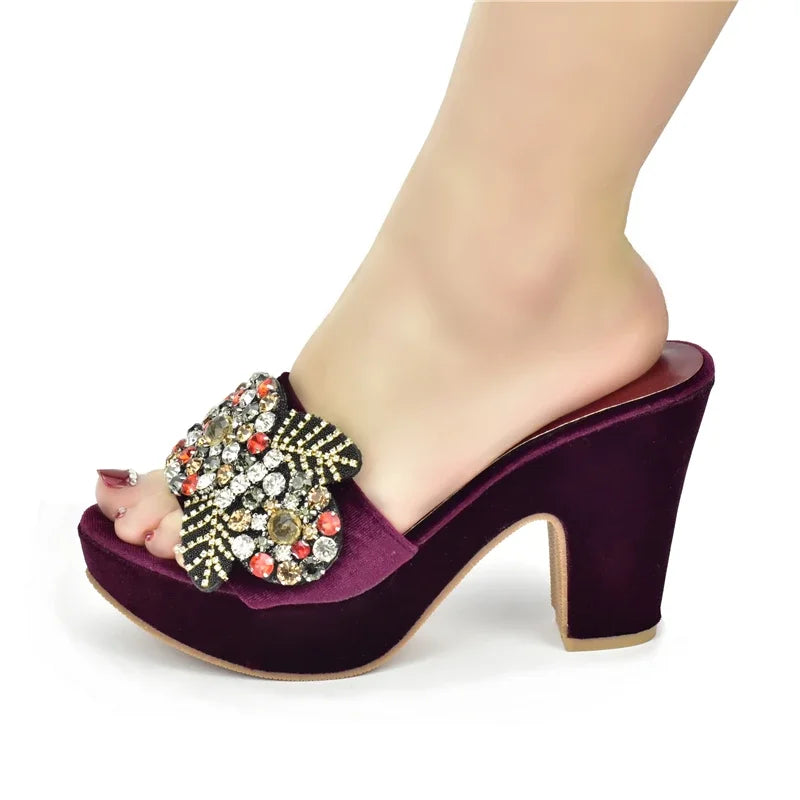 African Women Party Pumps Decorated with Rhinestone Shoes for Wedding Women Wedges Shoes for Women Platform Heels Nigerian Pumps