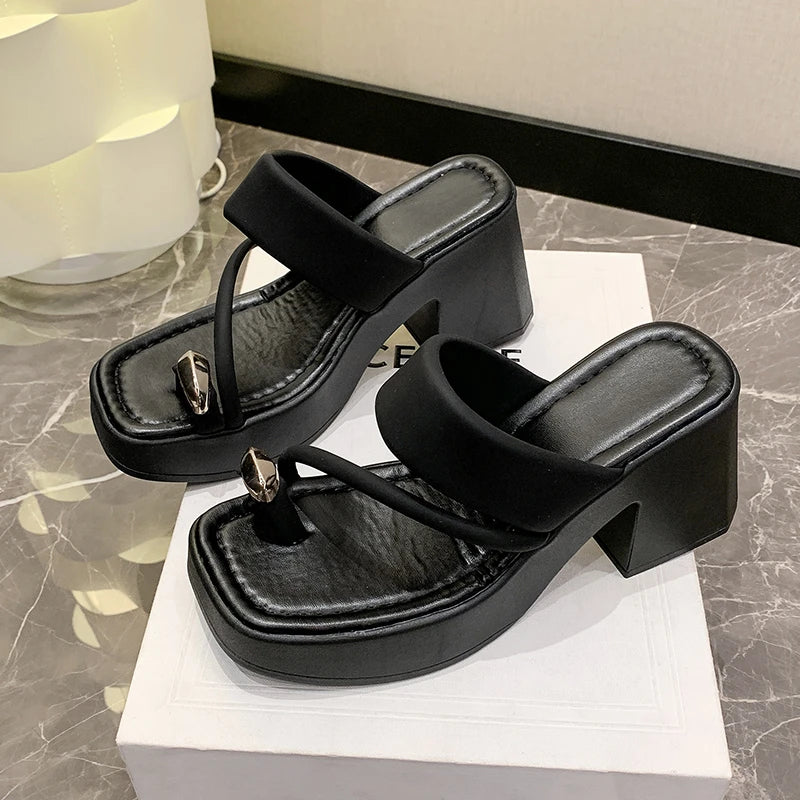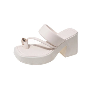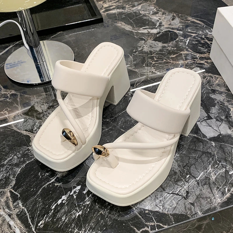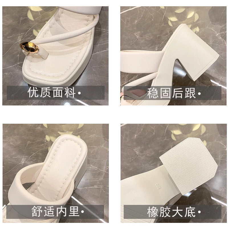 High -heeled Women's Sandals 2024 Summer New Fashion Versatile Toe Thick Bottom Non -slip Leisure High Heel Tide Sandy Slippers