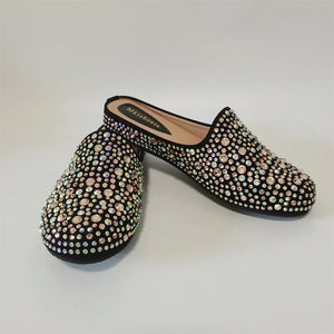 Hot Sale Multicolor Flat Heel Sequin Women's Slippers Casual Banquet Fashion Party Italian Mules Slipper Rhinestone Shoe F1013-2