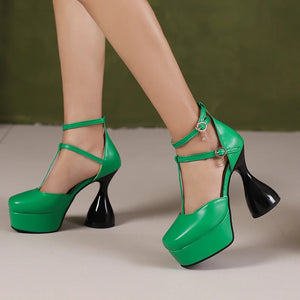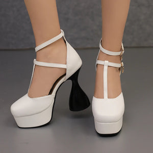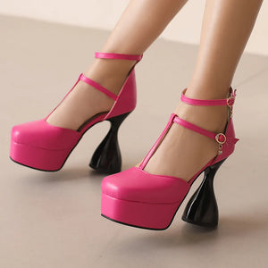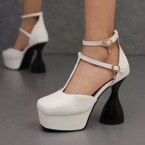 Übergröße T-Riemen Knöchelschnalle Schmalband Ultrahoher unregelmäßiger Absatz Modische Sandalen Quadratische Zehenpartie Hohl Sexy Damensandalen