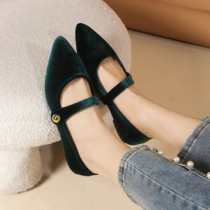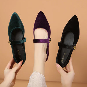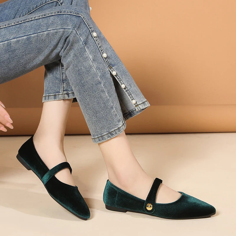 Spring Mary Jane Ballet Flats Shoes Woman Velvet Slip-on Women's Shoes Comfortable Soft Pointed Toe Flat Shoes for Women Zapatos