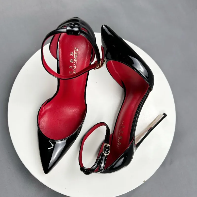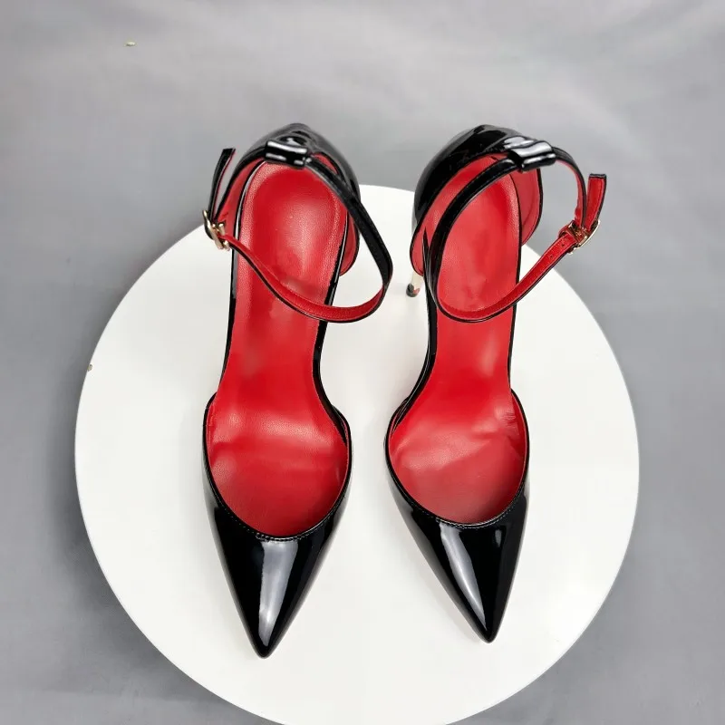 Summer Brand Ankle Straps Womens Sandals Red Insole 10 Cm Sexy Pointed Toe Pumps Matte Leather Ladies High Heels Size 32 33