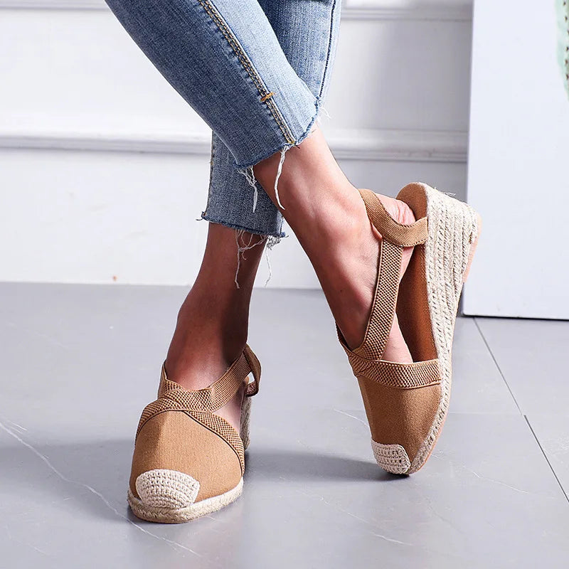 Sommer Damen Sandalen 2024 Stroh geflochten Keilabsatz Espadrille Sandalen Große Größe Damenschuhe Damen Gladiator Slingback Schuhe