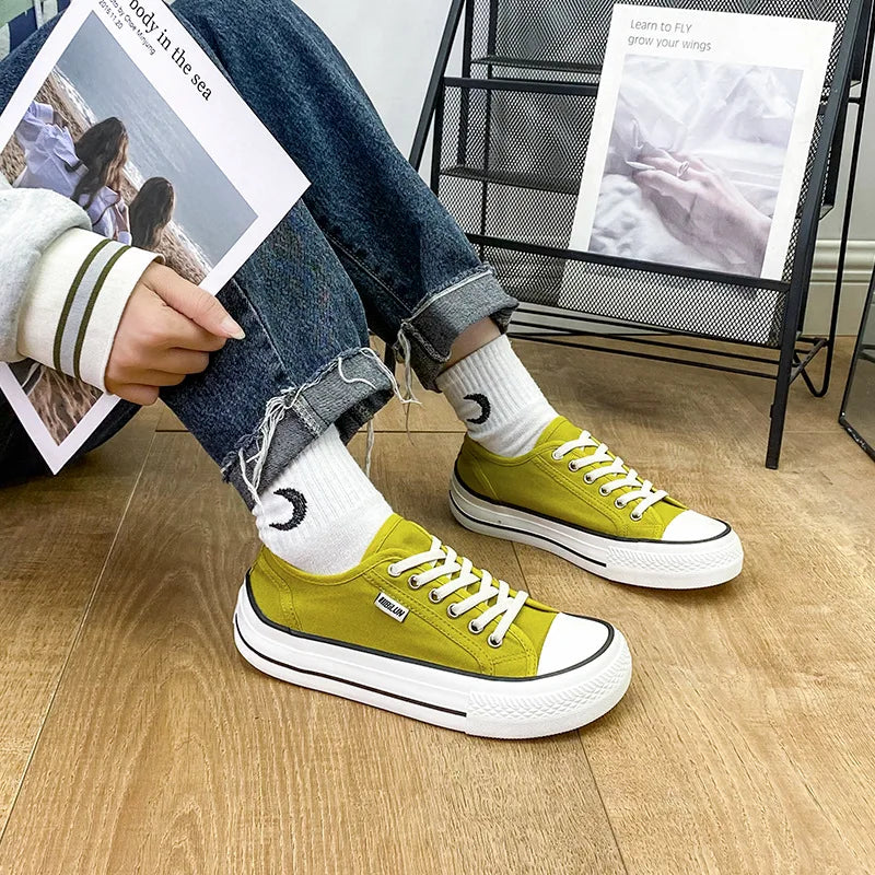 Women's Canvas Shoes 2024 Spring Lace Up Round Toe Causal Flat Shoes Student Sneakers Girls Skateboard Vulcanized Tennis Women