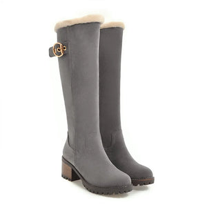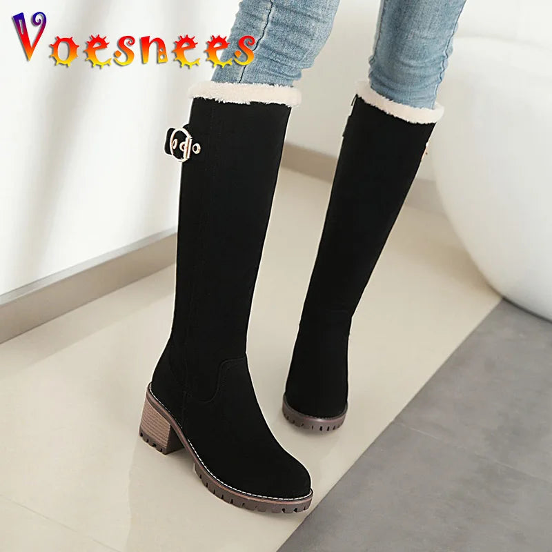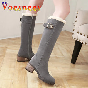 Women's Winter Warm Long Boots 2022 New Fashion Flock Knee-High Boots Exquisit College Style Plush Thick Soled Zip Female Shoes