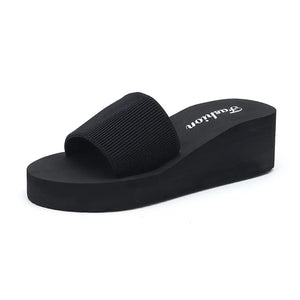 Fashion Wedge Heels Slippers Women Flip Flops Summer Thick Bottom Sandals Platform Slippers Soft Beach Shoes Non-Slip Slides