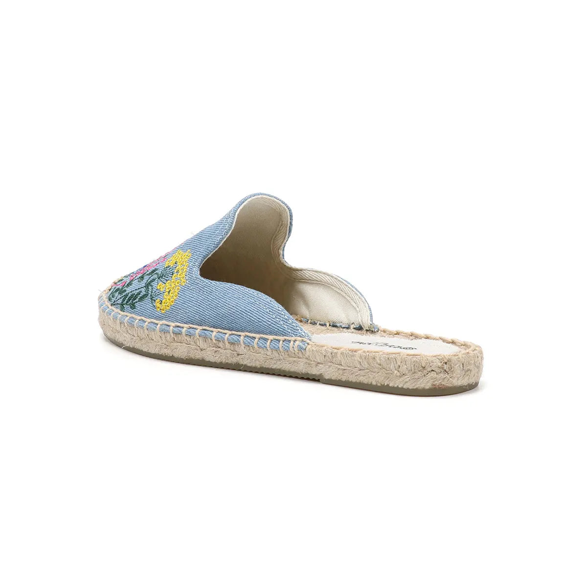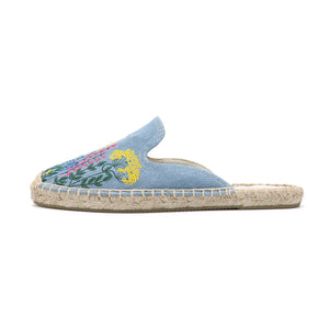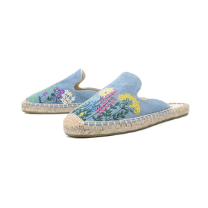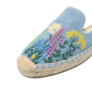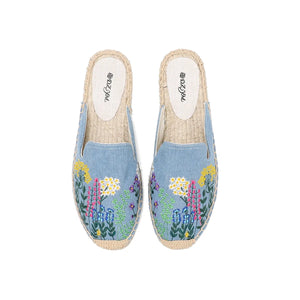 Ladies Summer Fashion Toe Slippers Sandals Flat Comfortable Breathable Slip-On Espadrilles Denim Floral Embroidered Mules