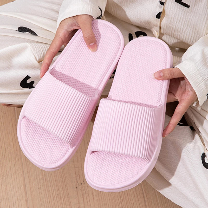 Lightweight Non-Slip Bathroom Home Slippers Women 2024 Summer Soft Eva Platform Slides Shoes Woman Couples Flat Flip Flops Mujer