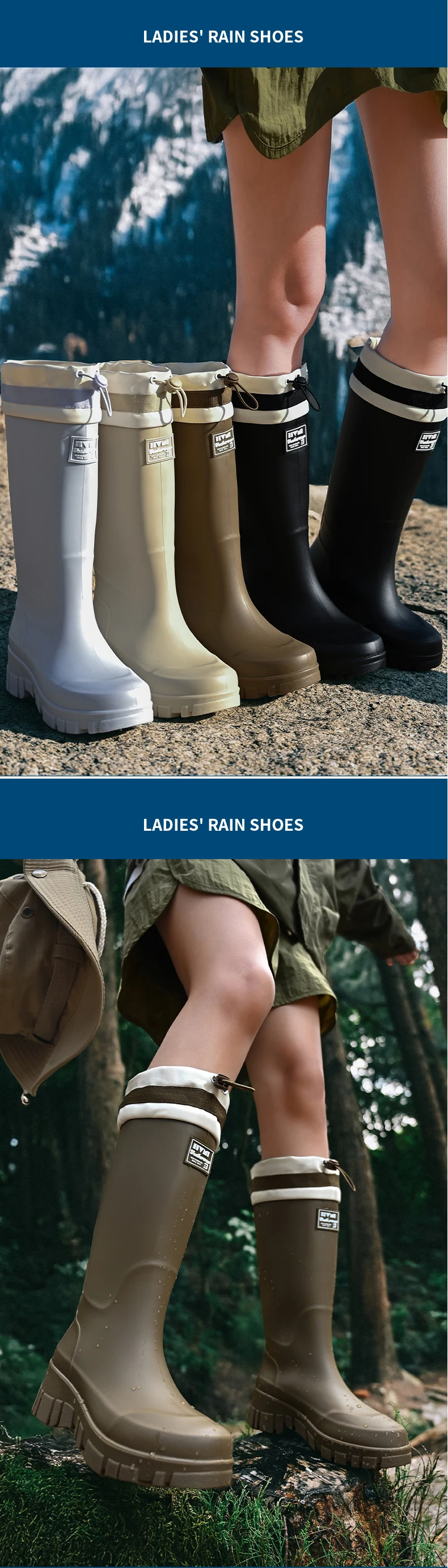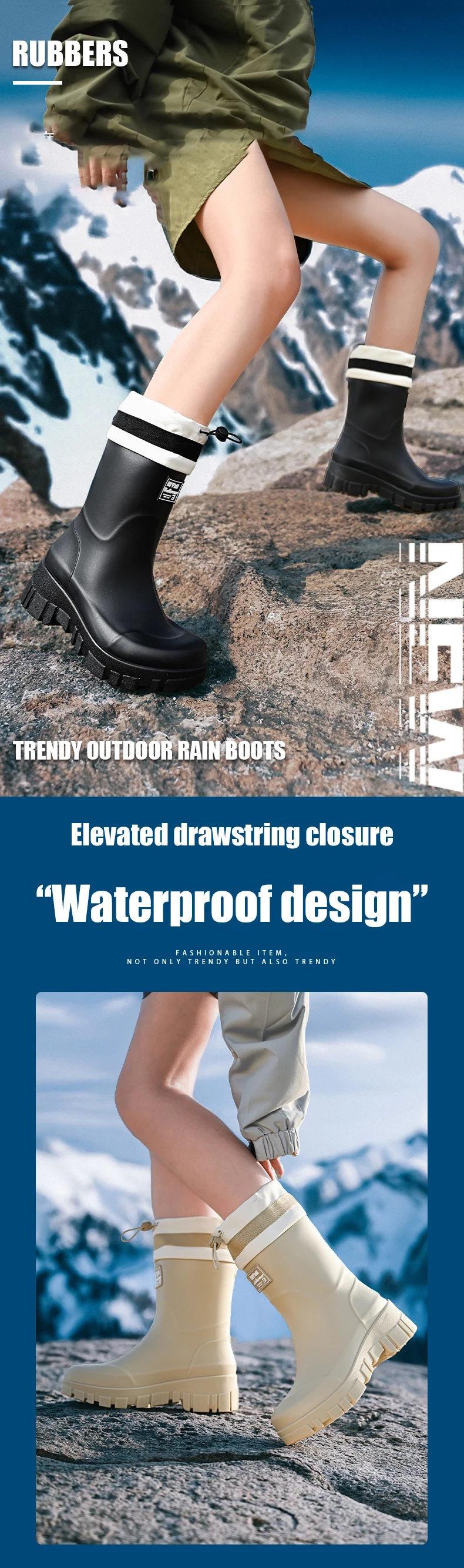 Solid Big Men Women Outdoor Tide Non-slip Waterproof Parent-Child Rain Boots Children Hundred Couple Adjustable Drawstring