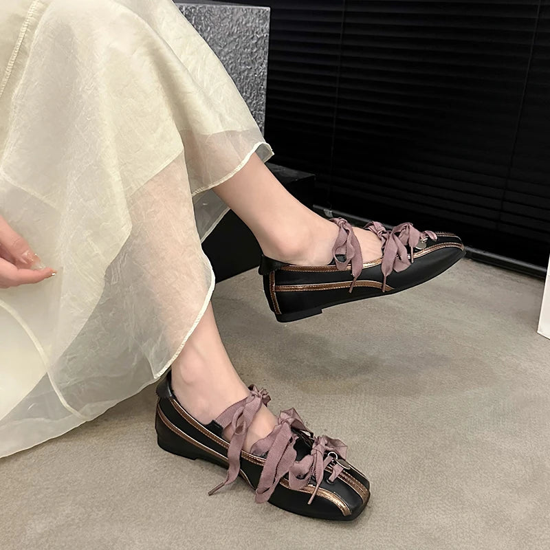 Spring New Color Matching Mary Jane Shoes Small Square Bow Flat Shoes Lazy Slip-on Single Shoes