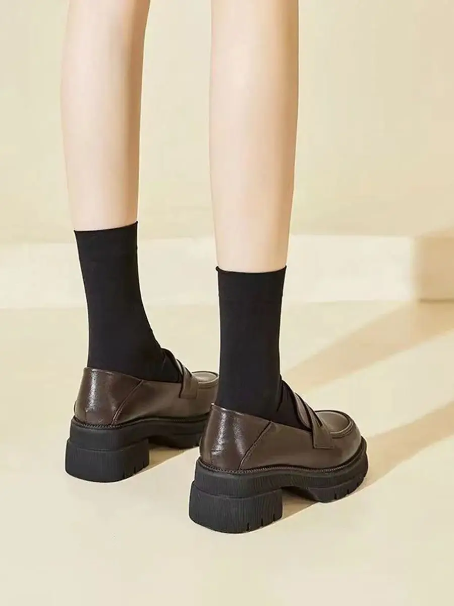 Spring Summer Casual College Style PU Pumps Women Japan School Uniform Shoes Loafers Solid Color Black Brown Soft Breathable