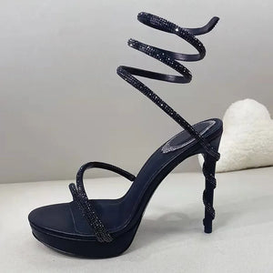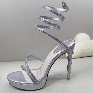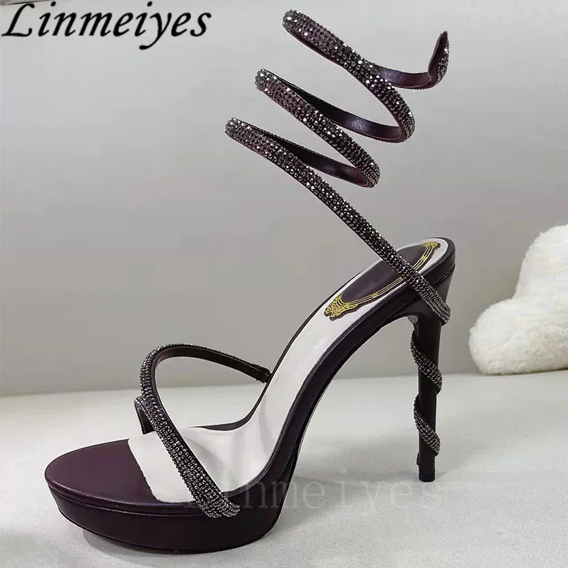 Summer Platform Sandals Woman Rhinestone Ankle Snake Twine Around Wedding Shoes Women High Heels Gladiator Sandals Women