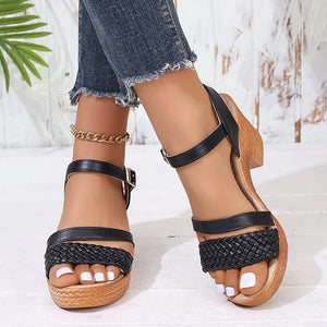 Women's Braided Chunky Heel Sandals Summer 2025 Ankle Strap Platform Gladiator Sandals Woman Fashion Woven High Heeled Sandalias