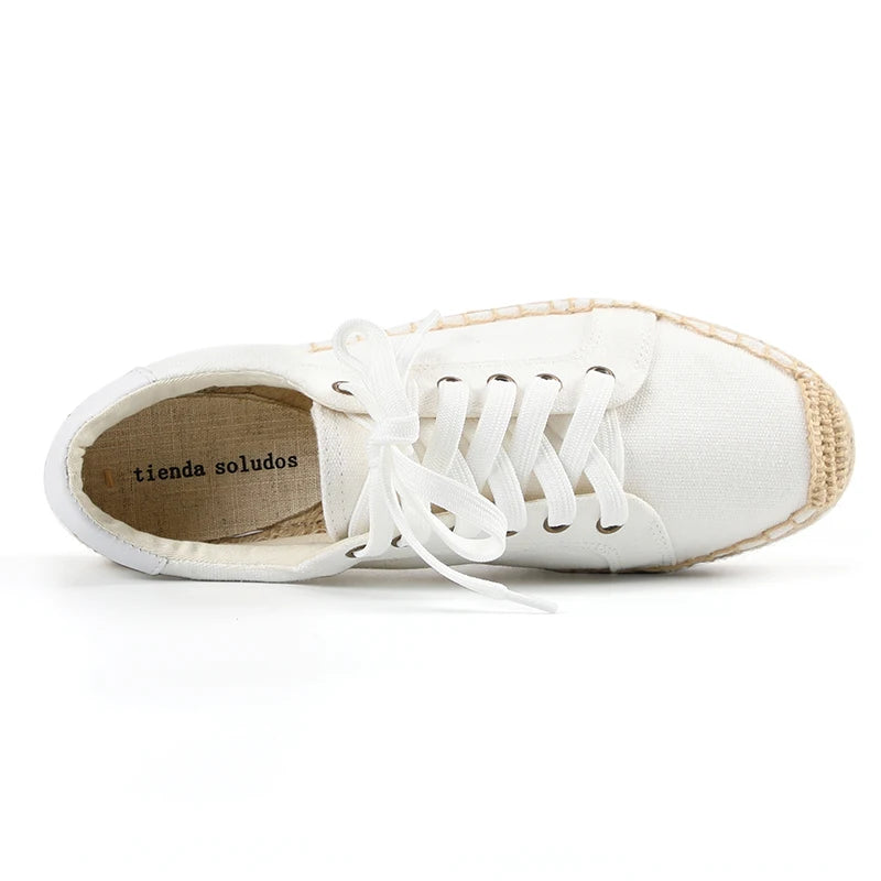 Women's Espadrille Work Shoes 2021 Real Sapatos Platform Cotton Fabric Lace-up Round Toe Solid Woman Espadrilles New Sports