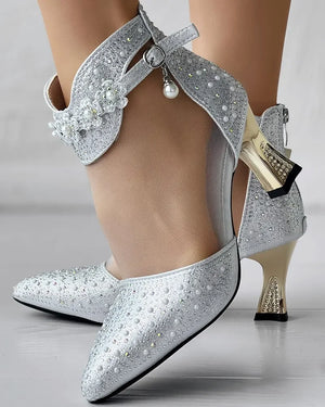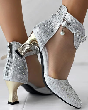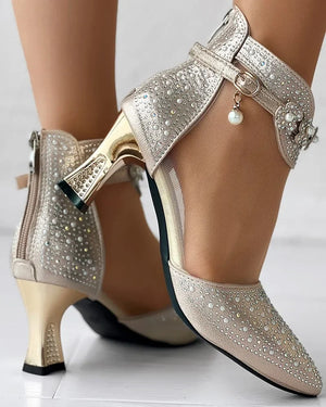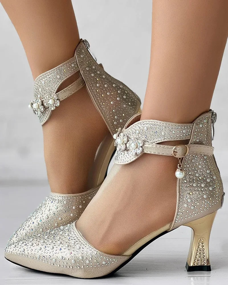Boots Women's Beaded Rhinestone Mesh Patchwork Pyramid Heel Ankle Mesh Sandals Versatile Heel Flower Shoes Mesh Breathable Pumps