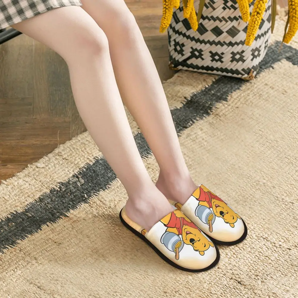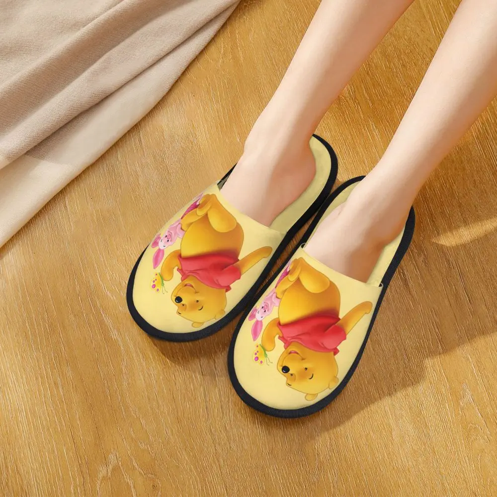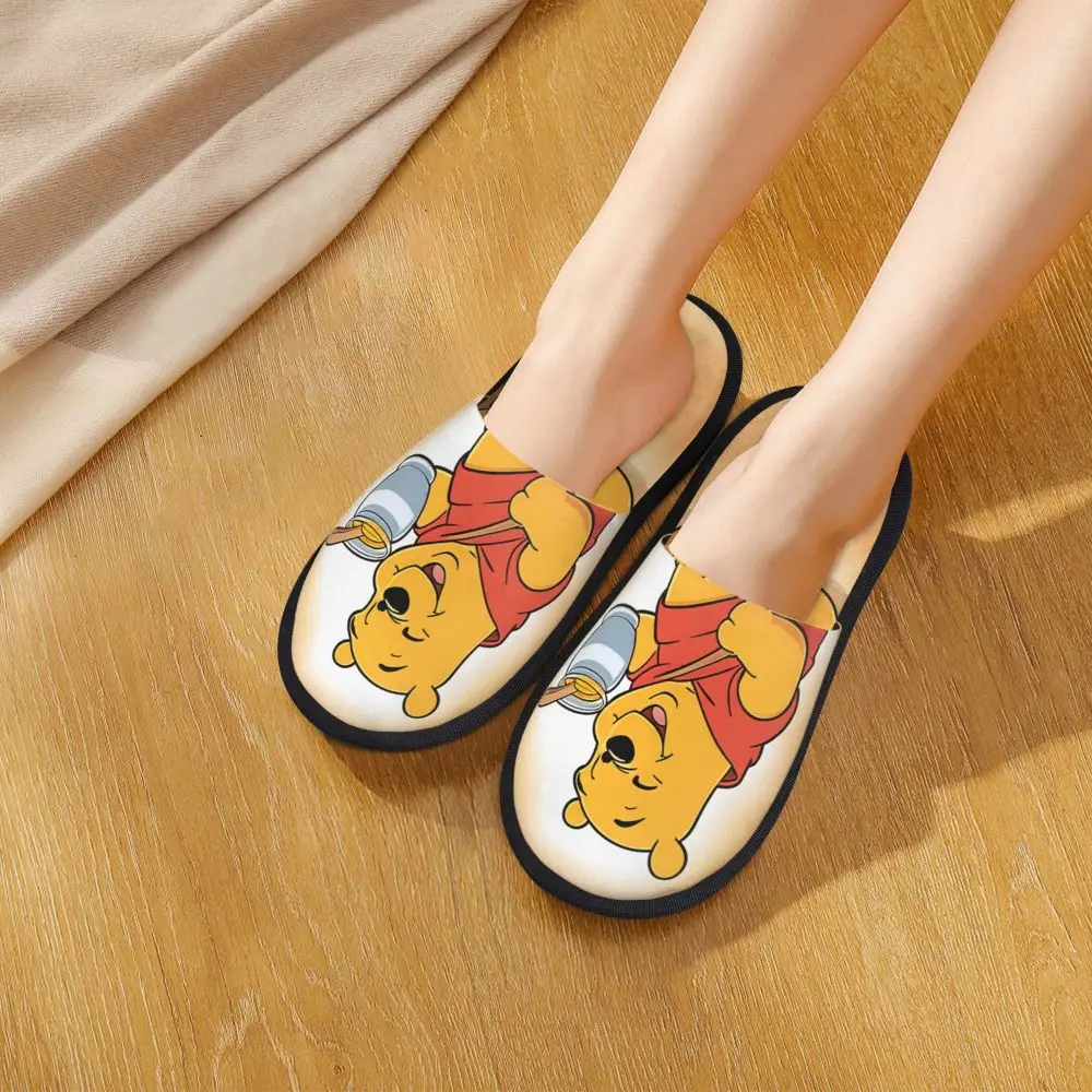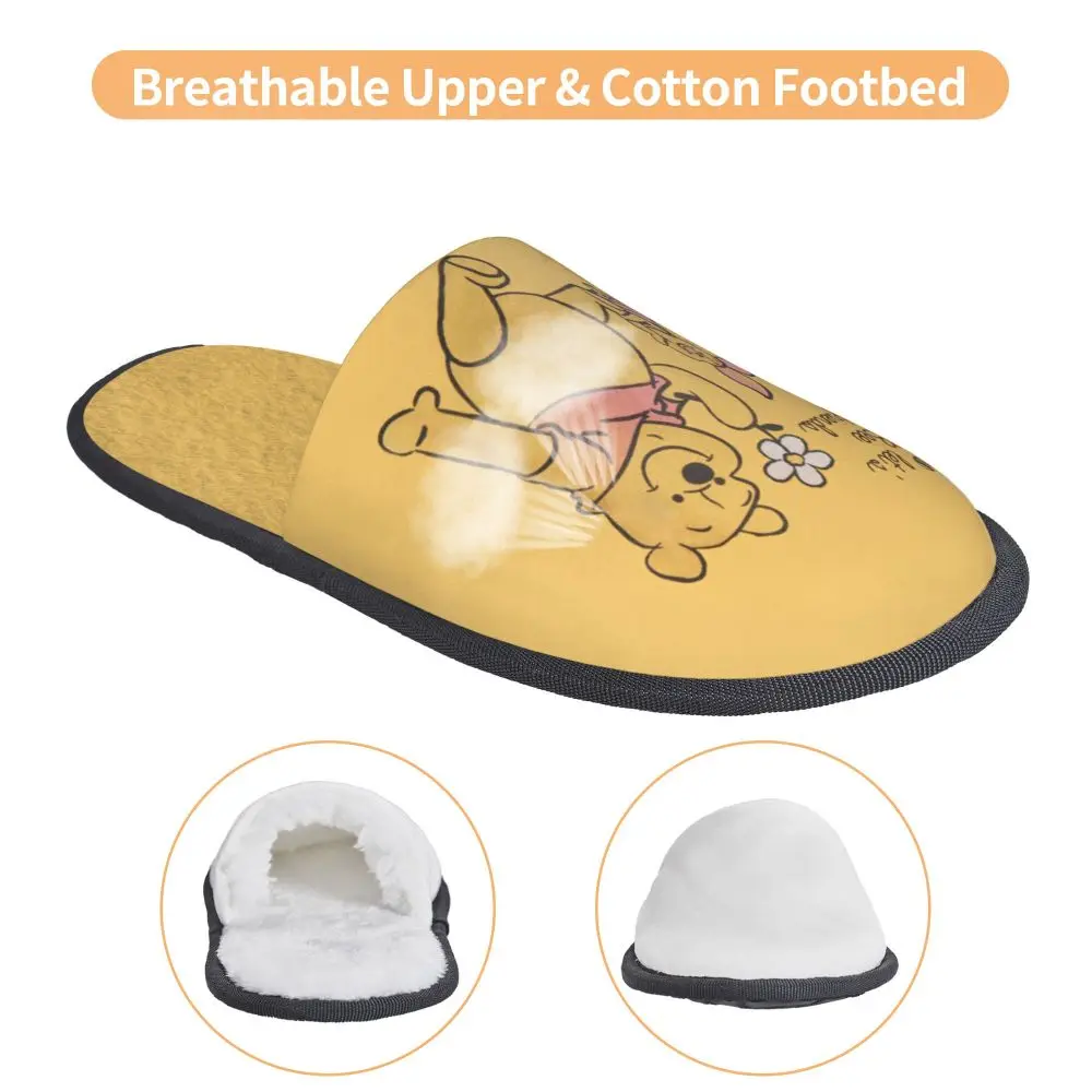 Custom Winnie The Pooh Memory Foam Slippers Women Comfy Warm Cartoon Bear House Slippers