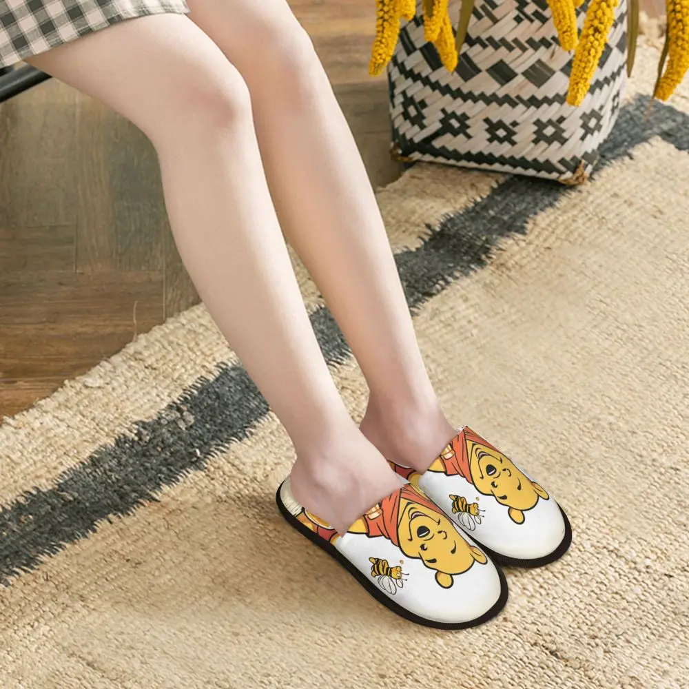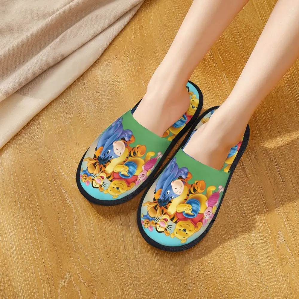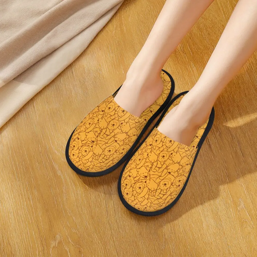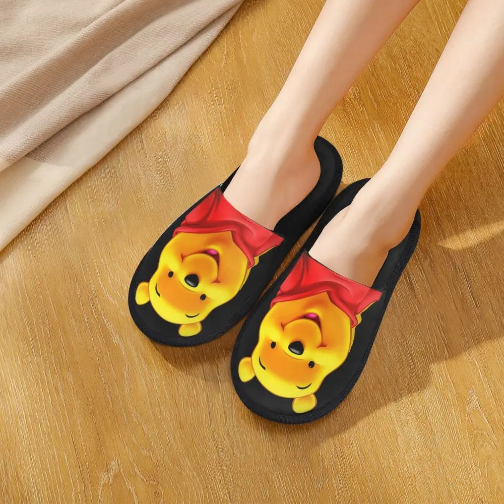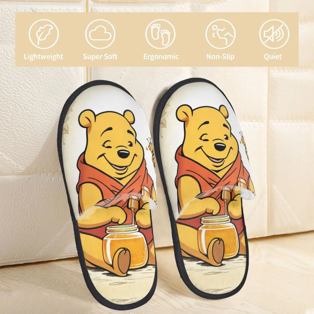Custom Winnie The Pooh Memory Foam Slippers Women Comfy Warm Cartoon Bear House Slippers
