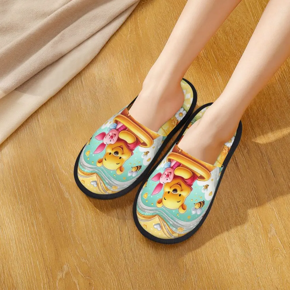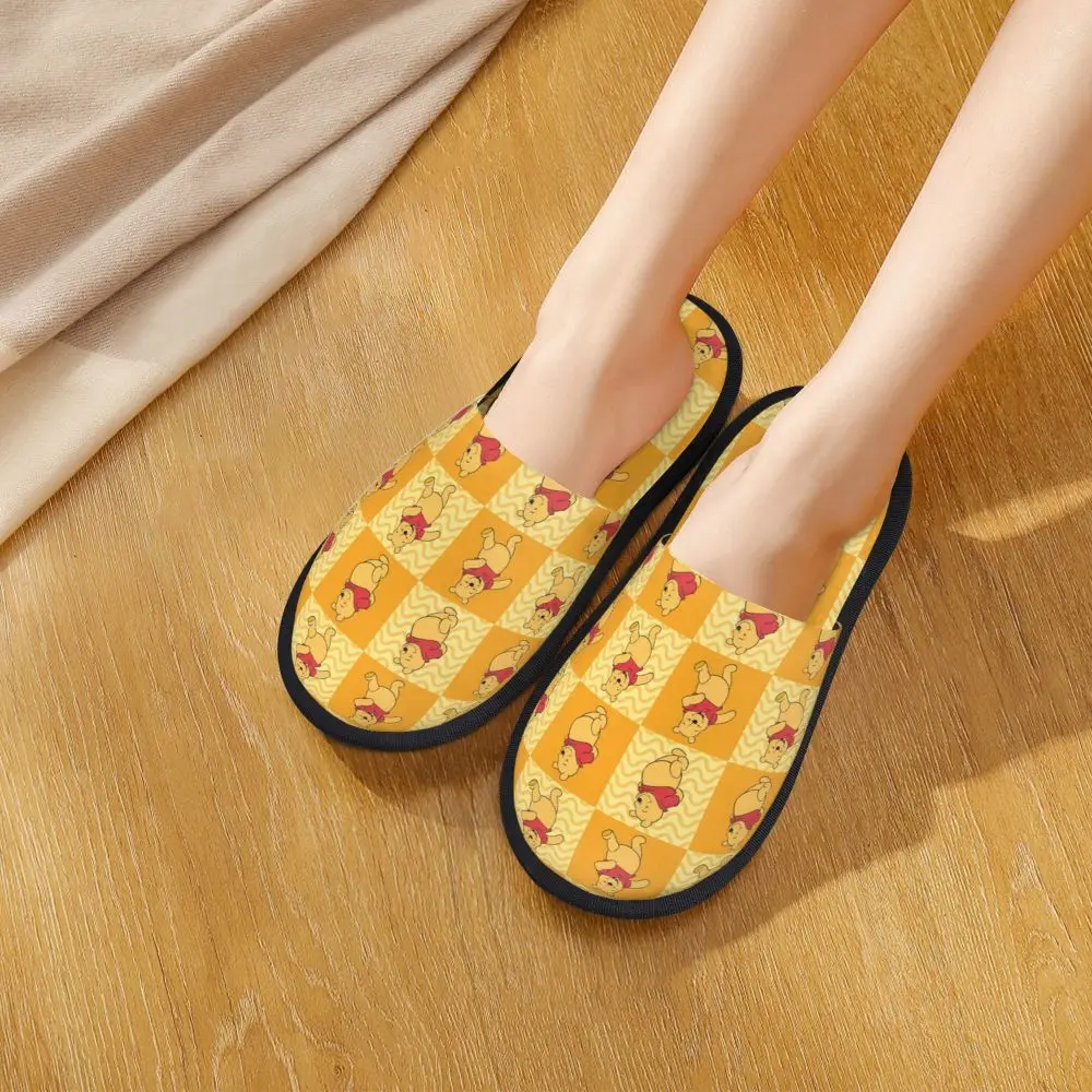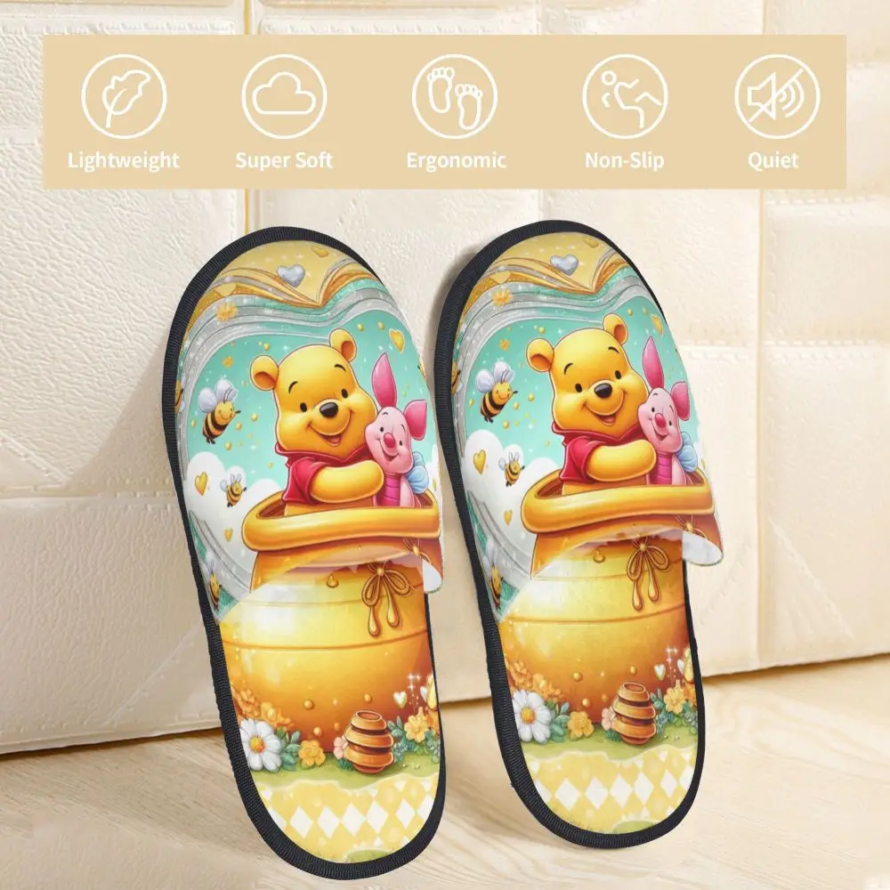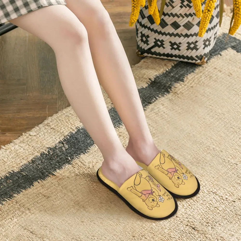 Custom Winnie The Pooh Memory Foam Slippers Women Comfy Warm Cartoon Bear House Slippers