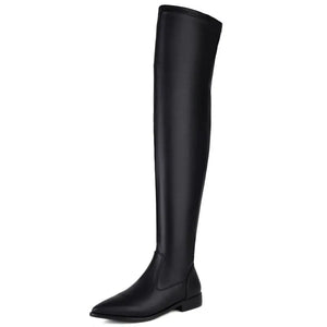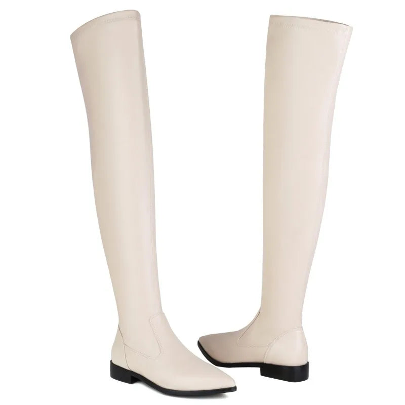 Elastic Thigh High Boots Women Soft Stretch Black Beige Over the Knee Boot Low Heels 2024 Autumn Winter Shoes Lady Large Size 48
