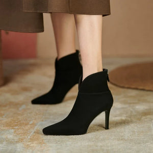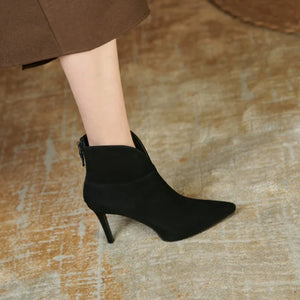 Fall Shoes Women Genuine Leather Pointed Toe Ankle Boots Super High Heel Women Shoes Elegant Thin Heels 2021 Fashion Women Shoes
