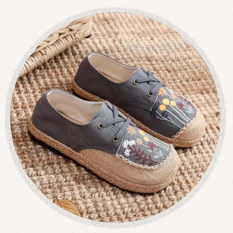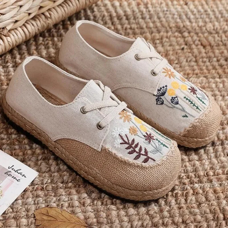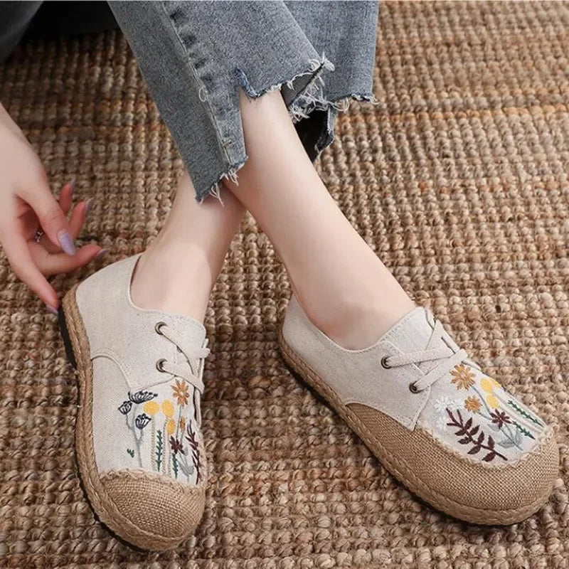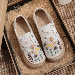 Flower Embroidered Women Handmade Linen Cotton Slip On Espadrilles Loafers Comfortable Sneakers Casual Walking Shoes 2024