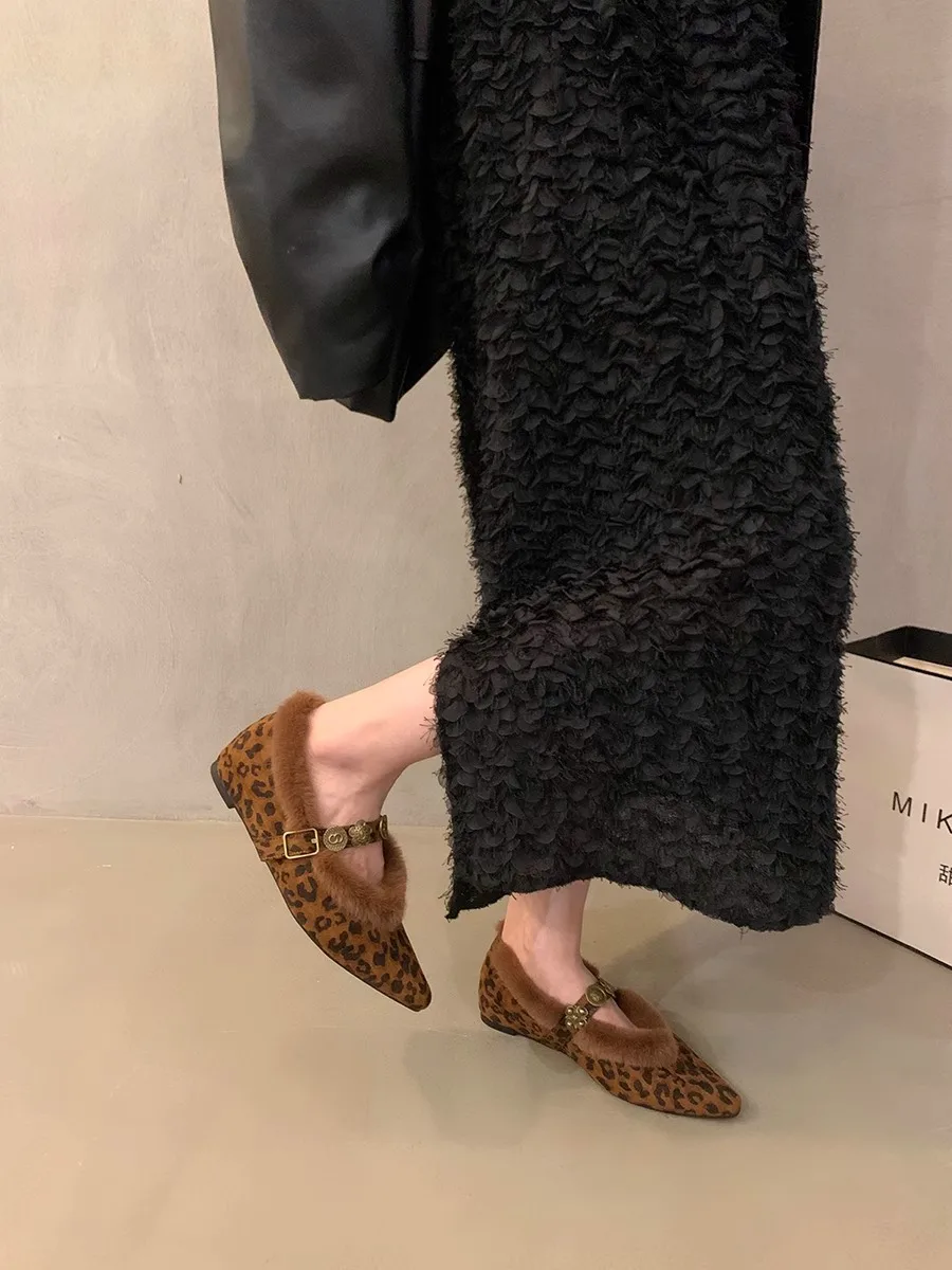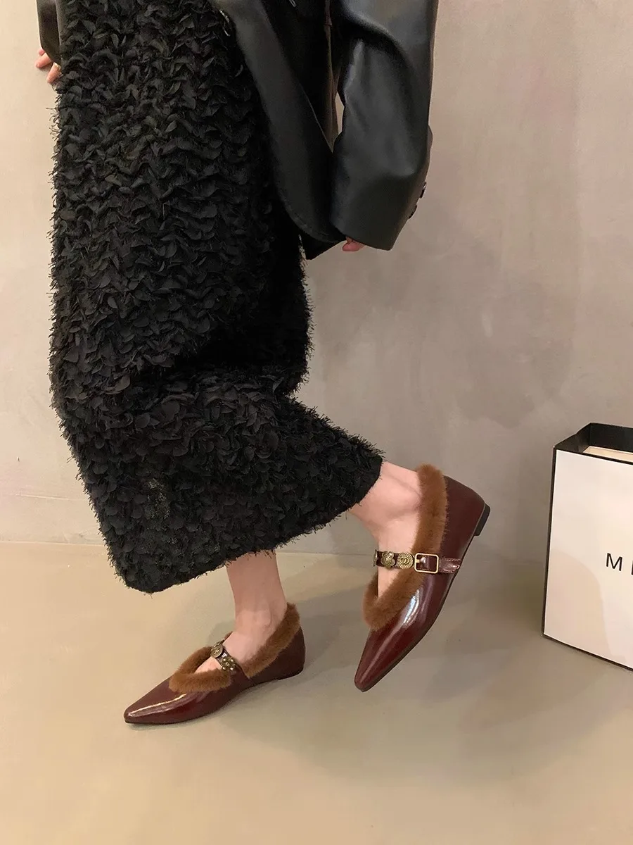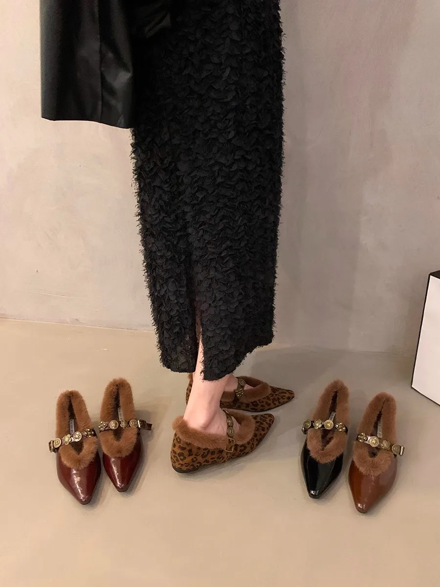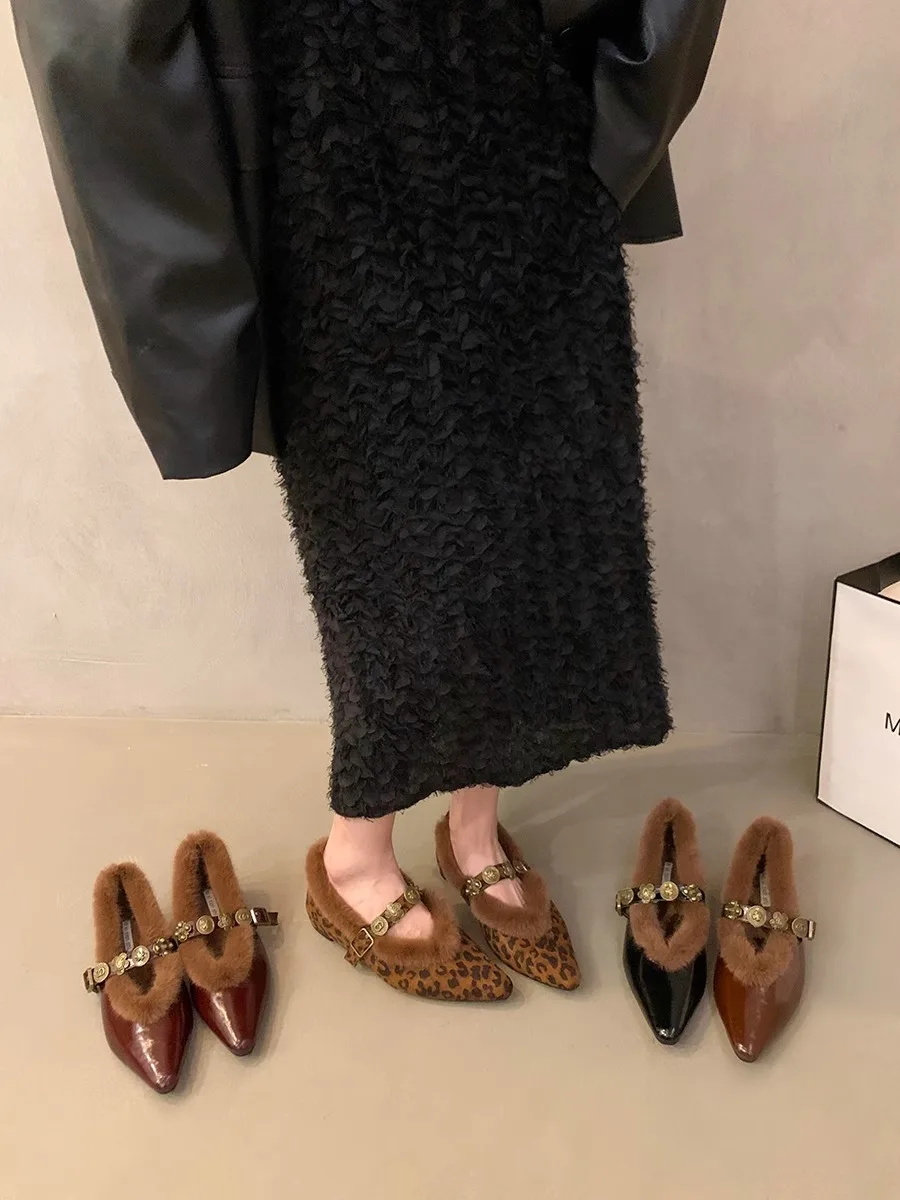 Fur Pointed Toe Women Sexy Chelsea Boots Elegant Ankle Flats Warm Winter Shoes 2024 New Designer Style Fashion Female Footwear
