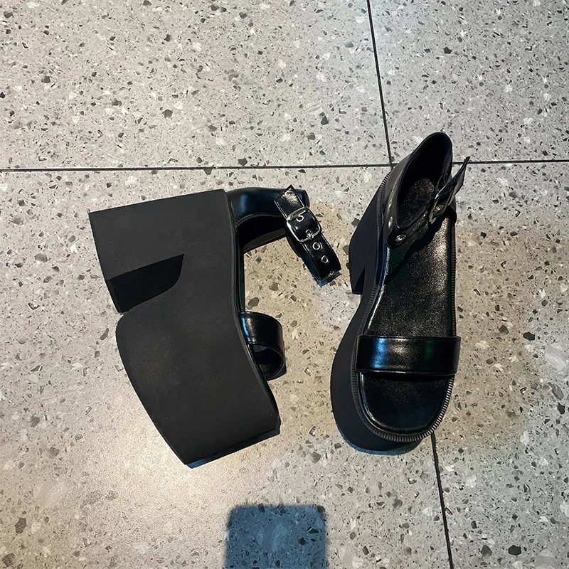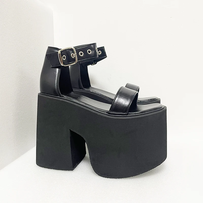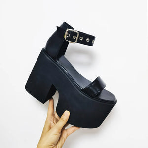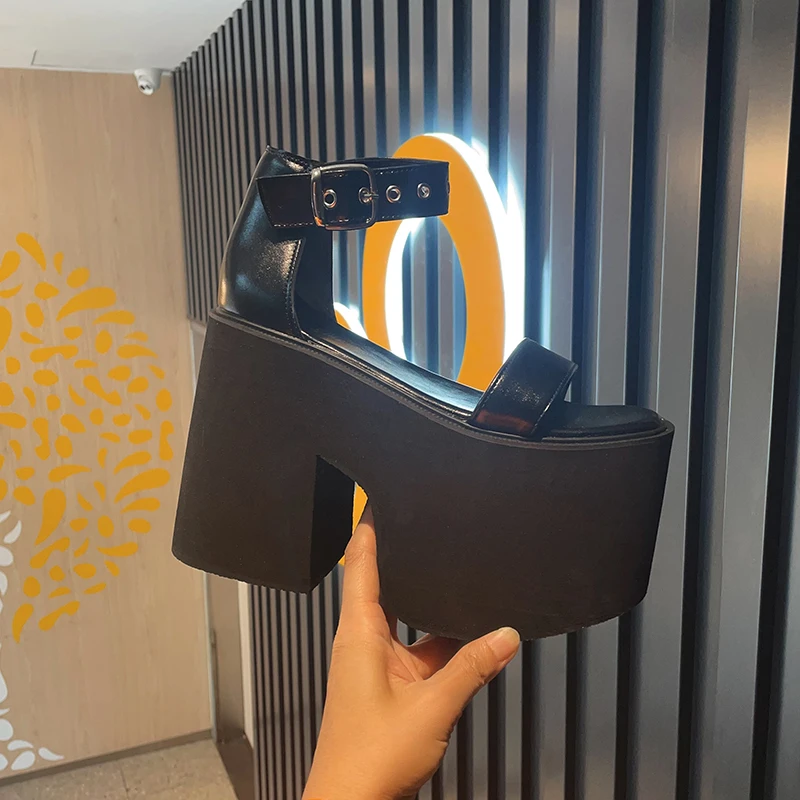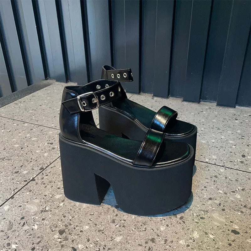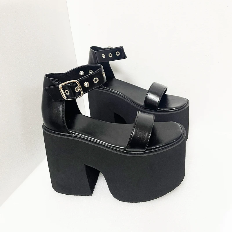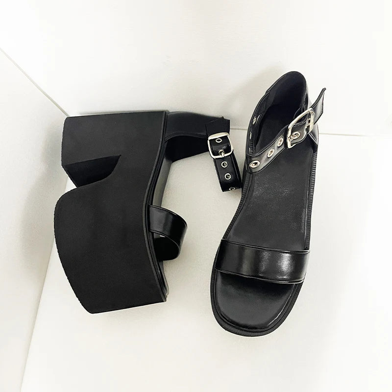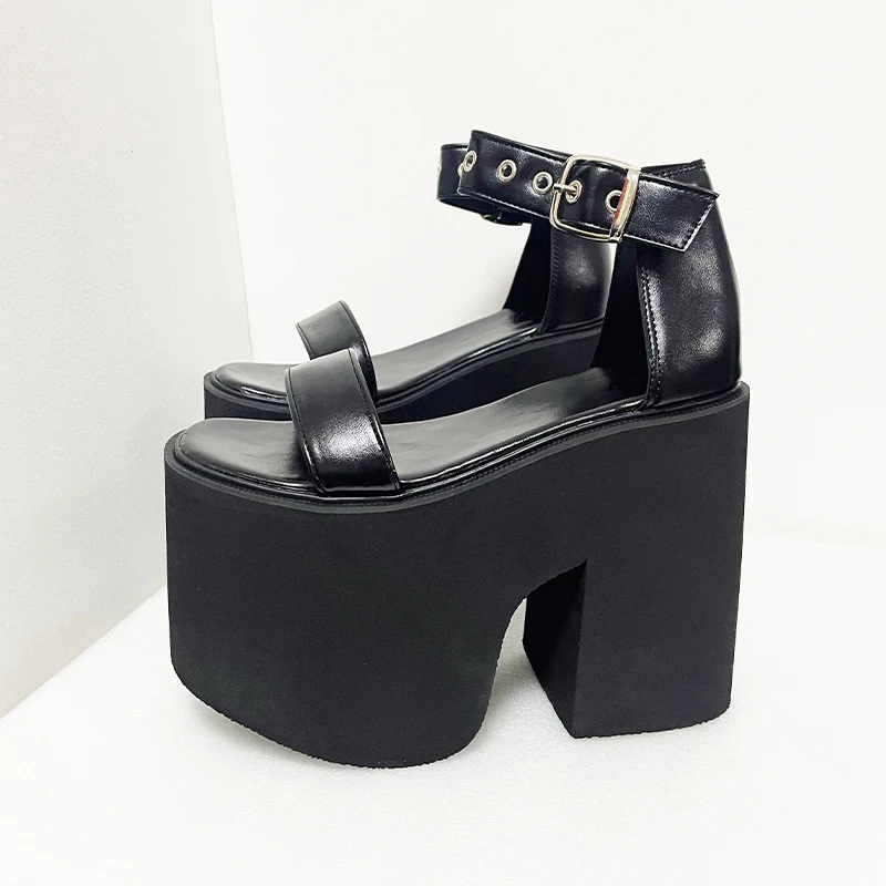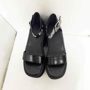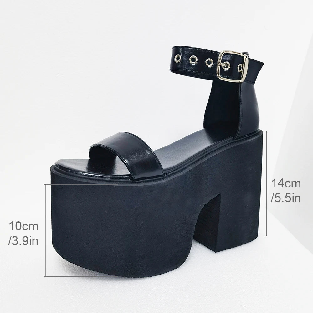 Gdgydh Chunky Heel Sandals for Women Thick Bottom Nightclub Increased Open Toe Fashion Rivet Platform Wedge Heels Ankle Strap