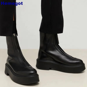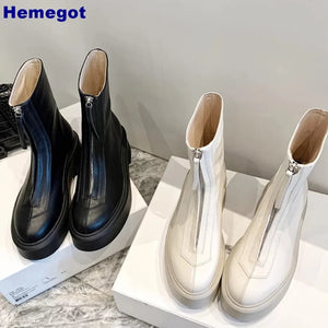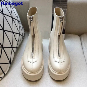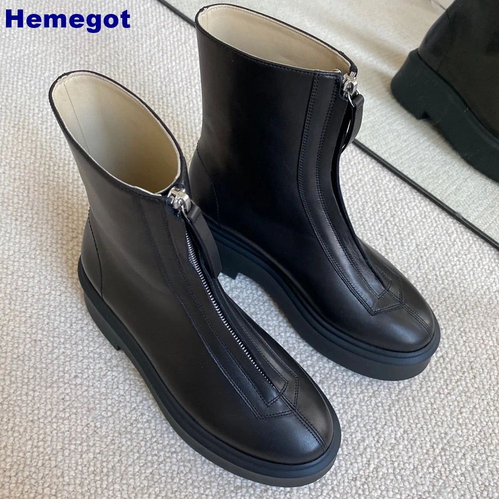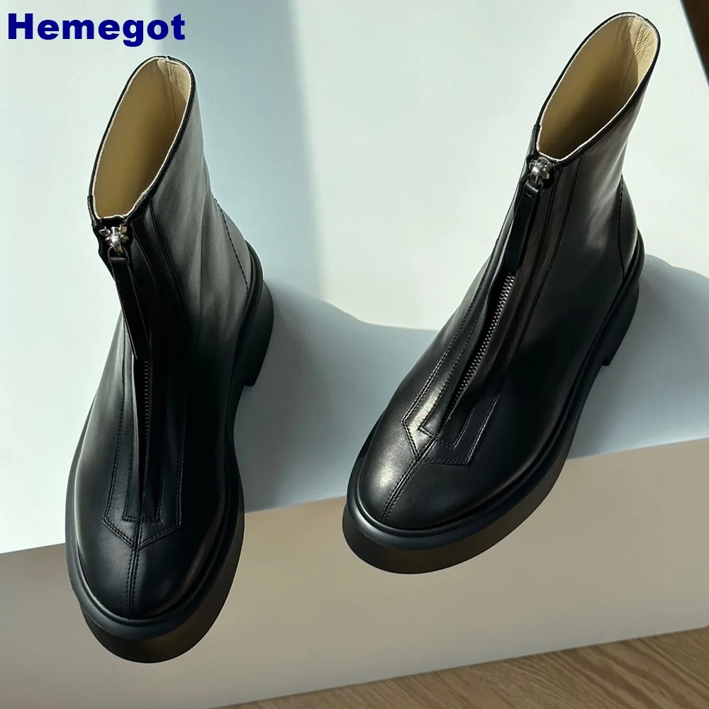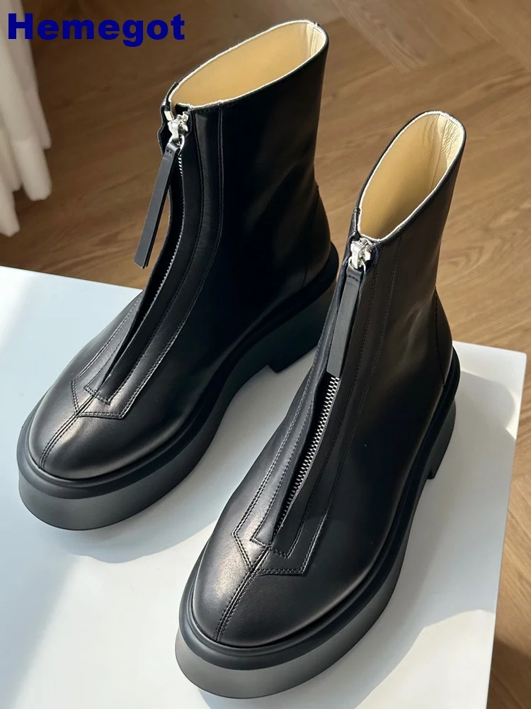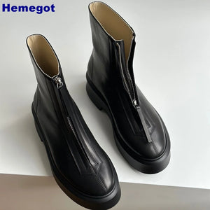 Genuine Leather British Style Short Boots 2024 Spring Outdoor Casual Office Round Toe Zip Thick Sole Boots Fashion Womens Boots