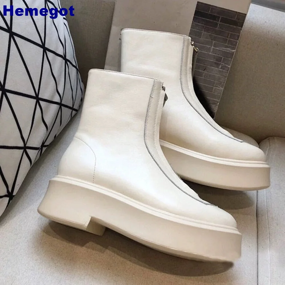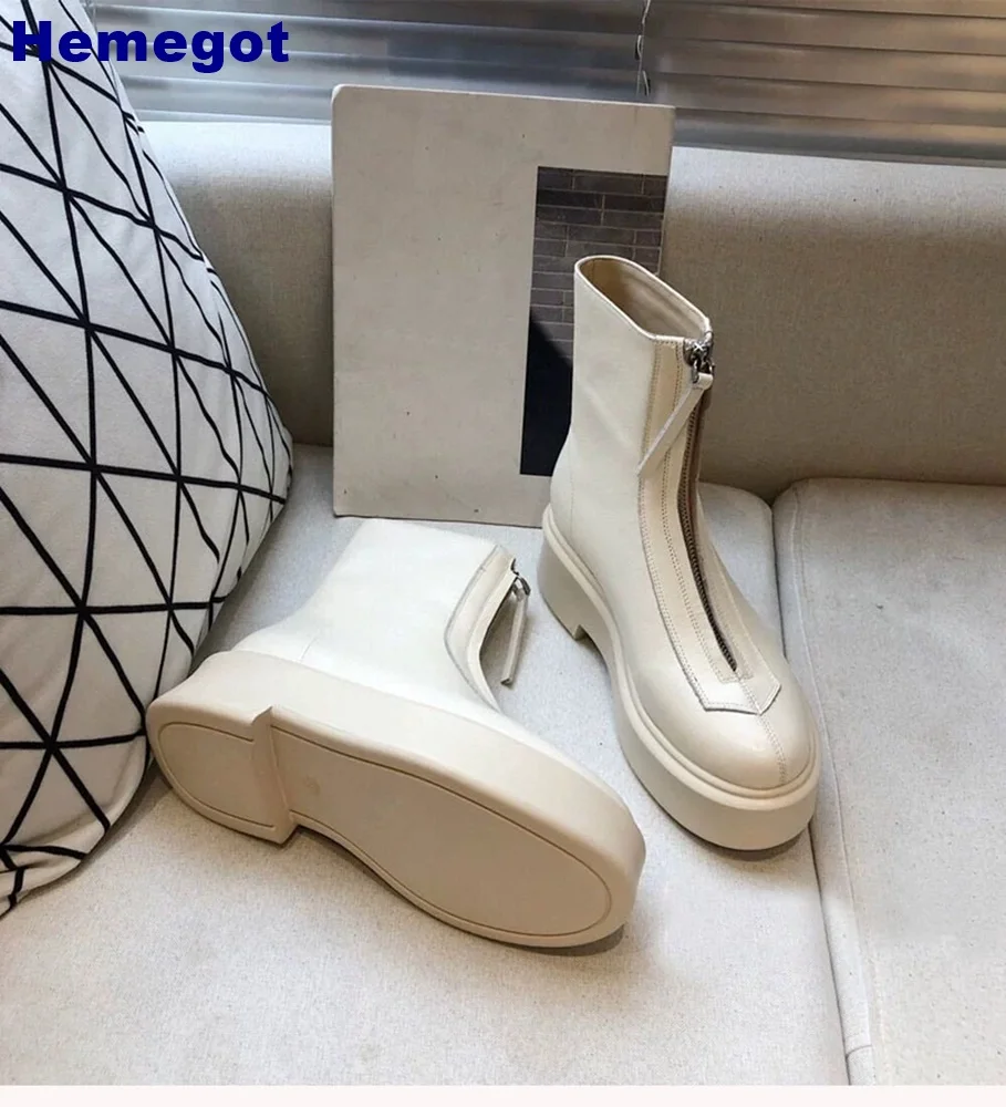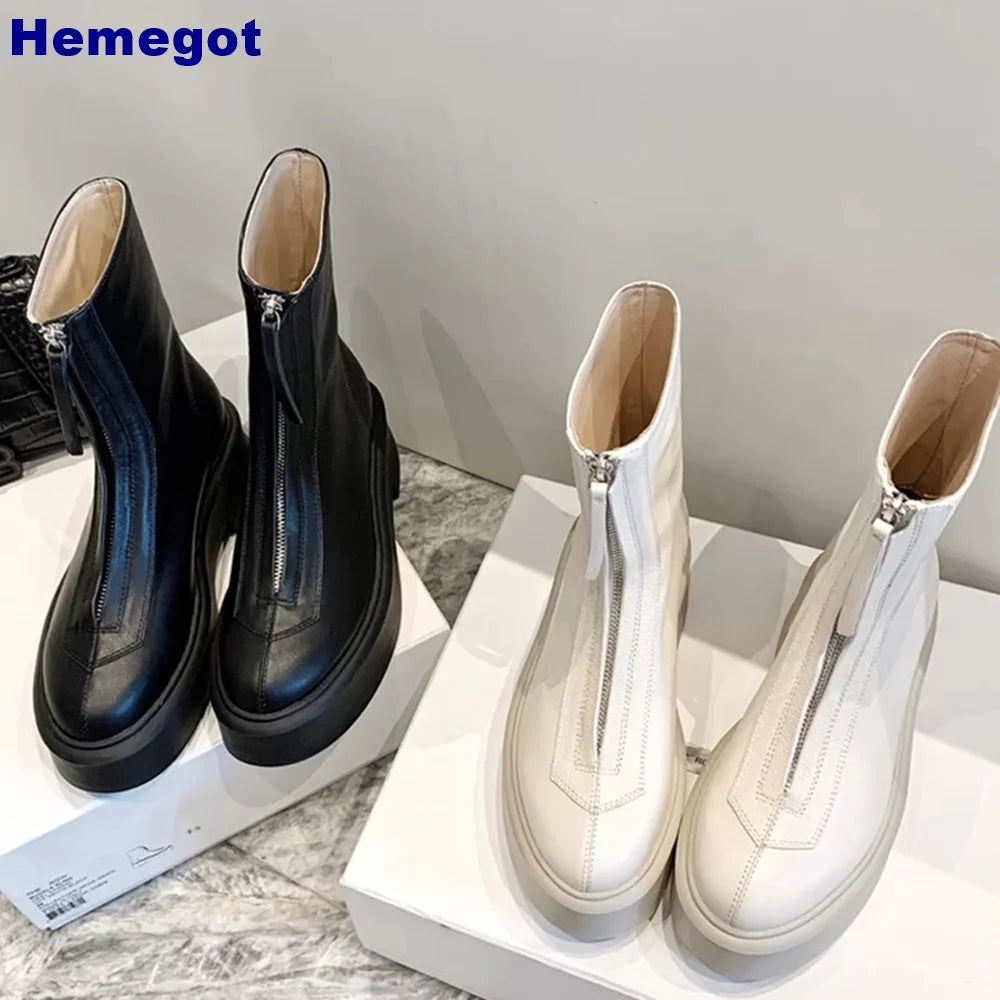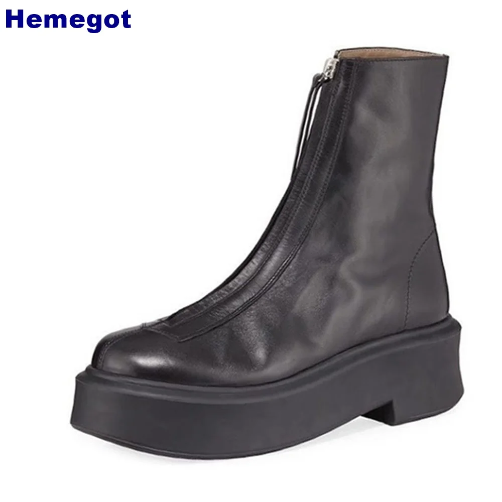 Genuine Leather British Style Short Boots 2024 Spring Outdoor Casual Office Round Toe Zip Thick Sole Boots Fashion Womens Boots