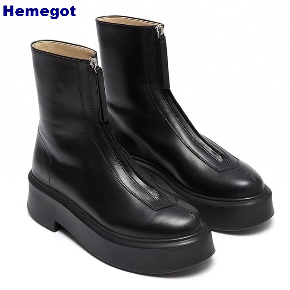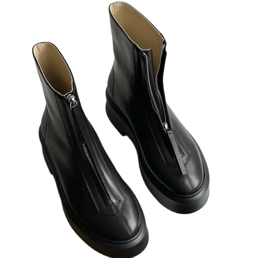 Product Name:Genuine Leather British Style Short Boots 2024 Spring Outdoor Casual Office Round Toe Zip Thick Sole Boots Fashion Womens Boots