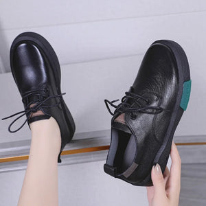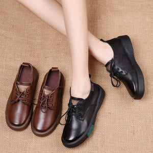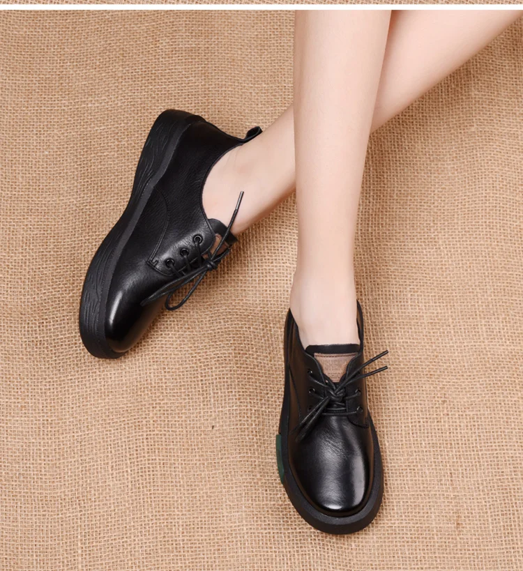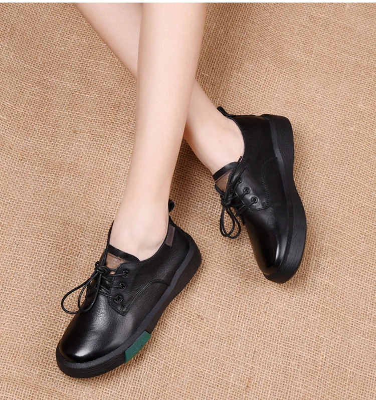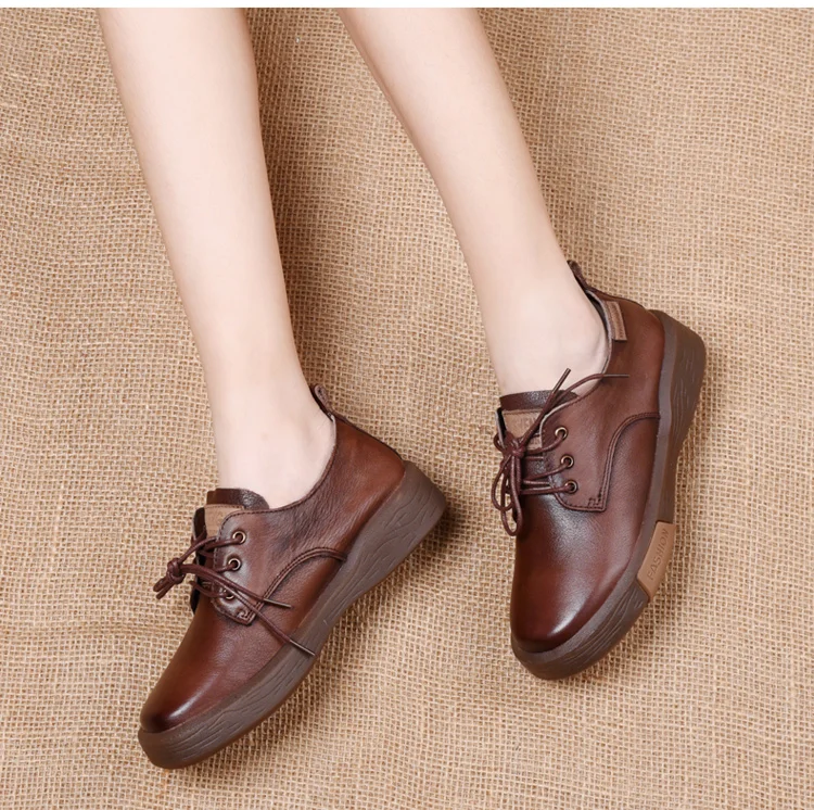GKTINOO Sneakers Women Genuine Cow Leather Round Toe Lace-Up Ladies Retro Casual Flat Shoes Handmade Loafers
