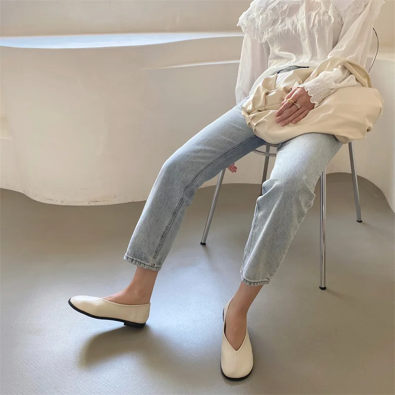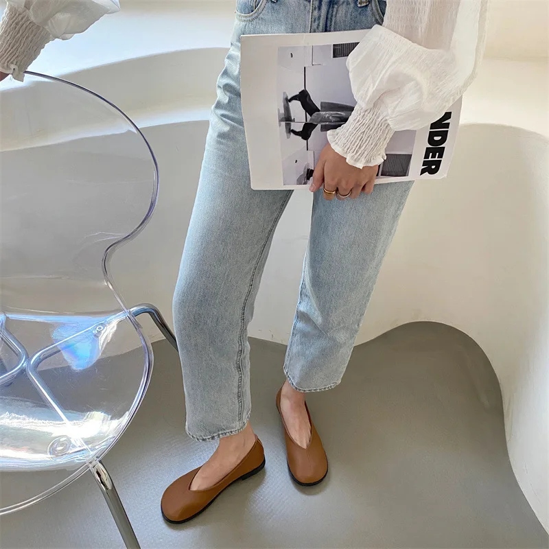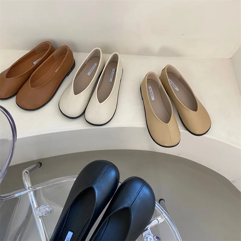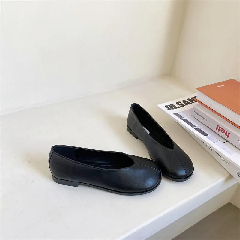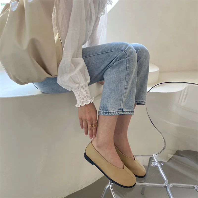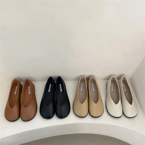 Japanese Style Round Toe Loafers Women Soft Leather Flats Shoes Patchwork Sewing Moccasins Female Cozy Ballet Slip On Lazy Mules