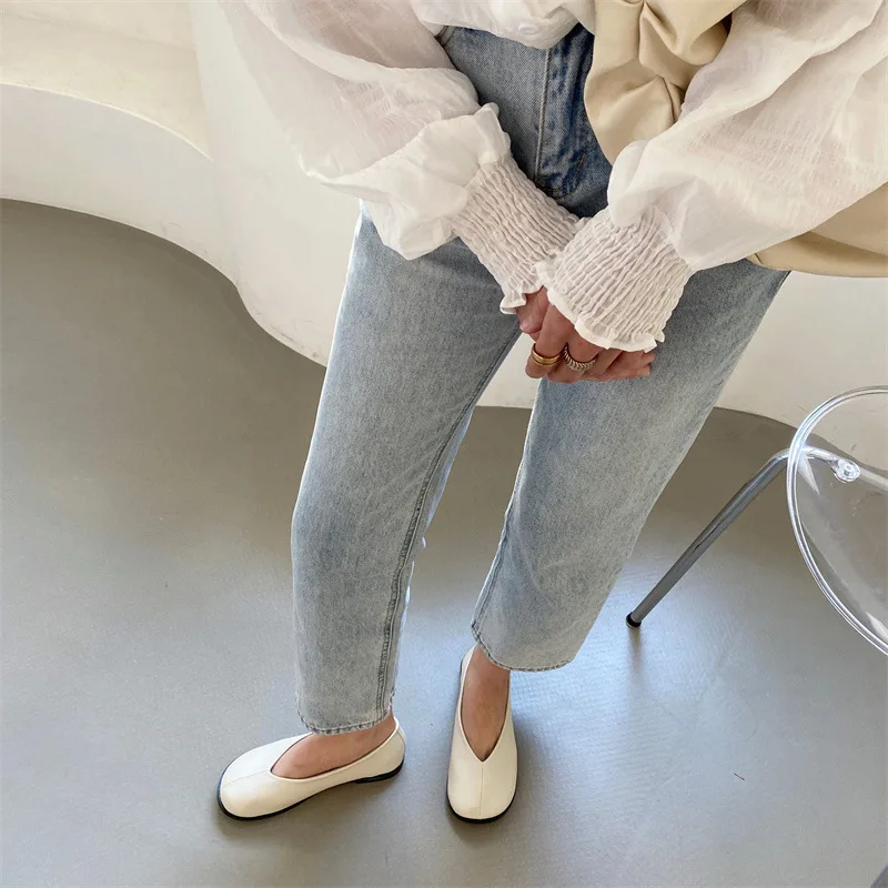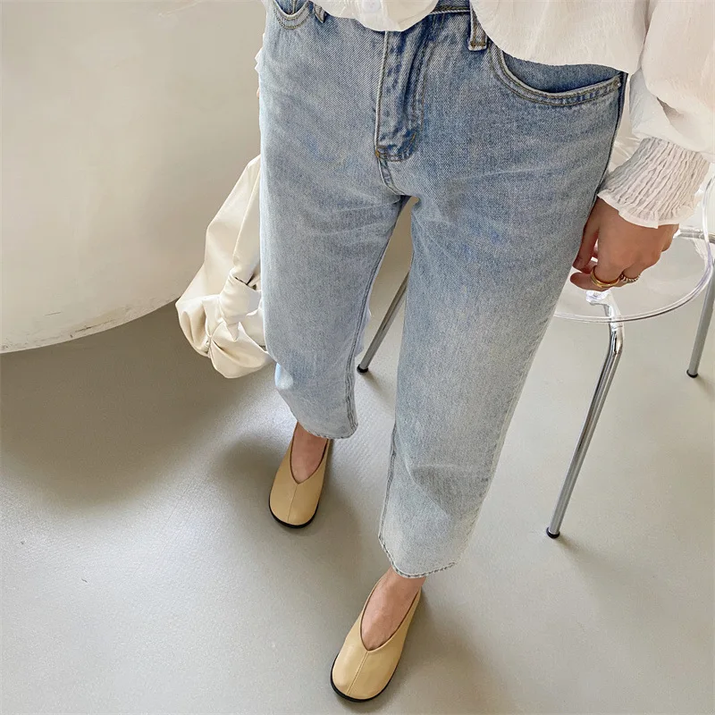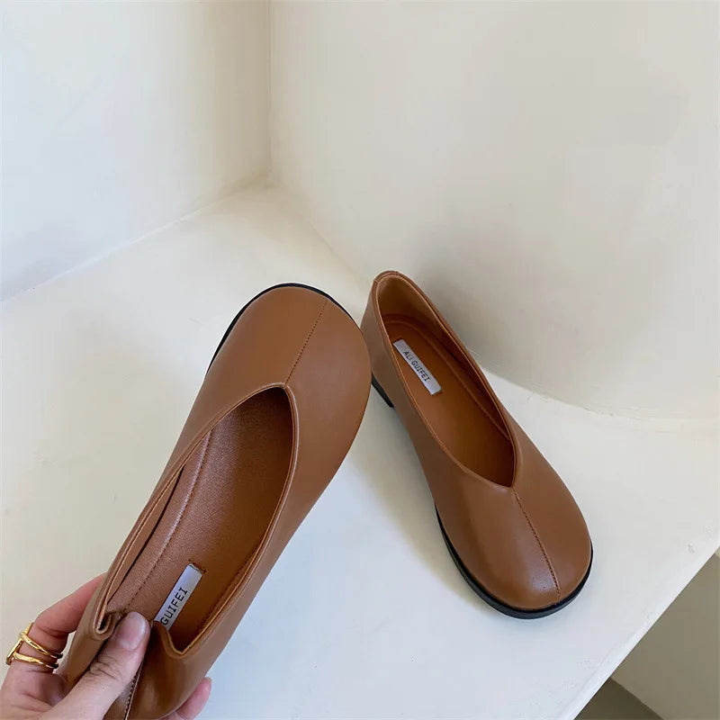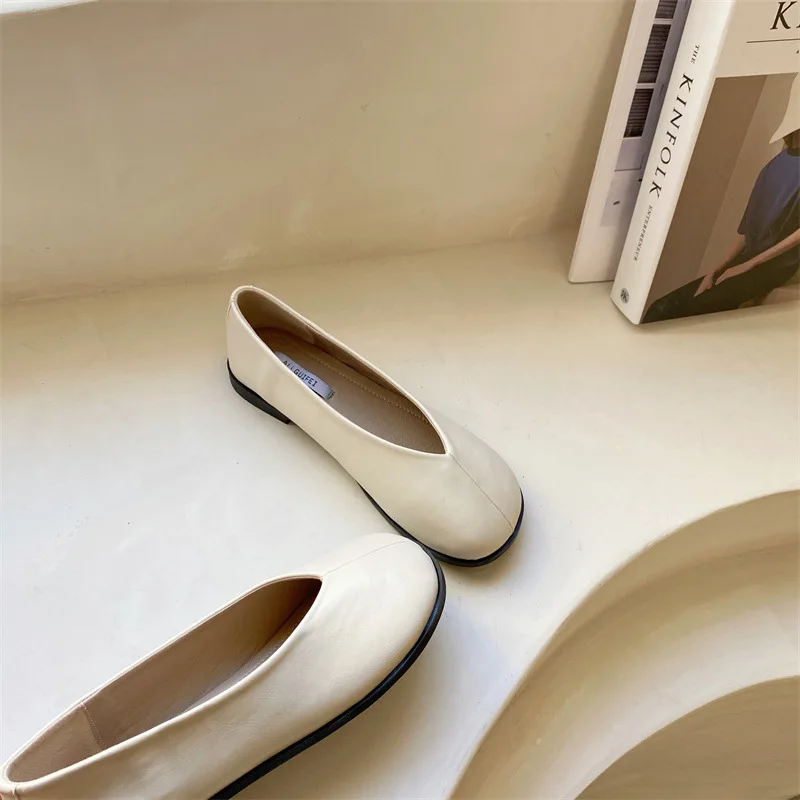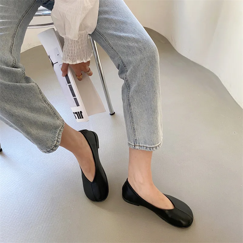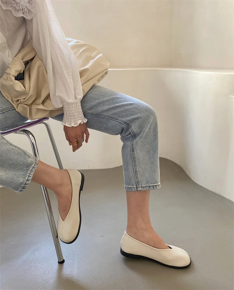 Japanese Style Round Toe Loafers Women Soft Leather Flats Shoes Patchwork Sewing Moccasins Female Cozy Ballet Slip On Lazy Mules