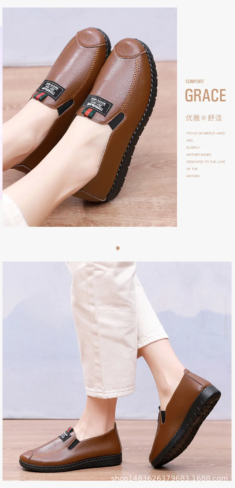 Leather Shoes for Women 2024 New Women Casual Soft-Soled Non Slip Breathable All-Match Footwear Loafers Women Flat Shoes Zapatos