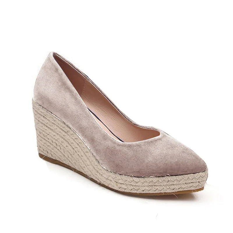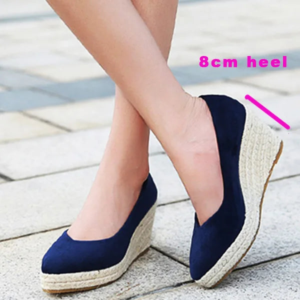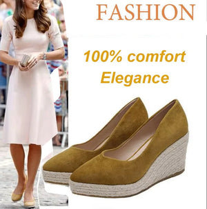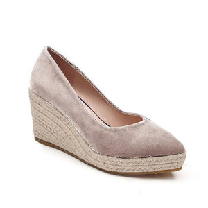 Suede women wedge shoes pointed toe pumps high heels platform lady pumps party espadrilles shoes singback princess same