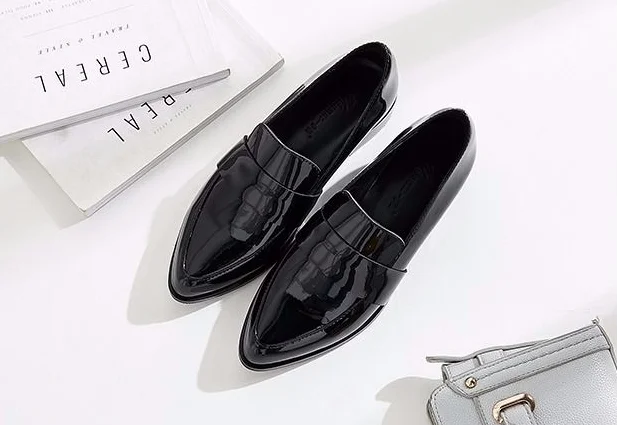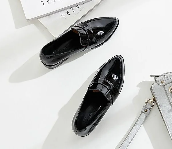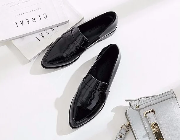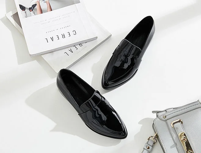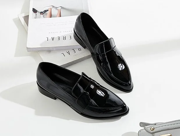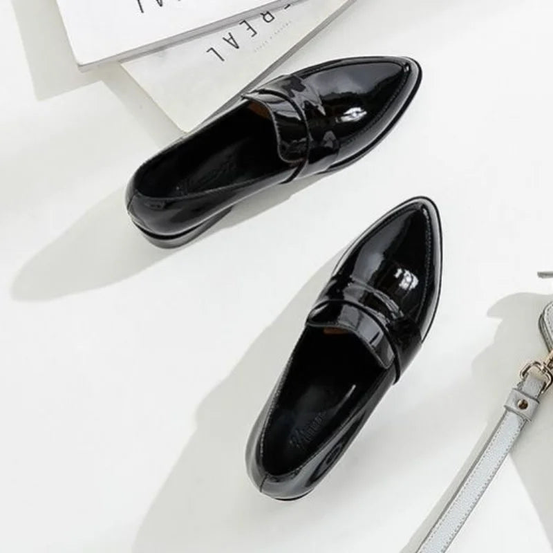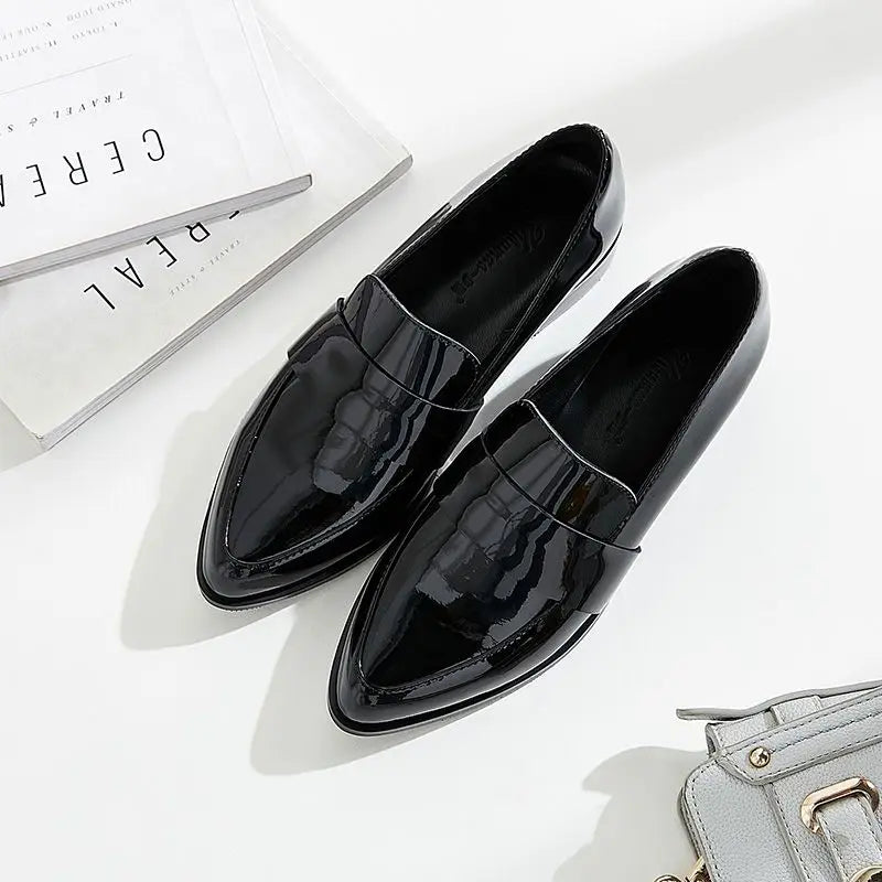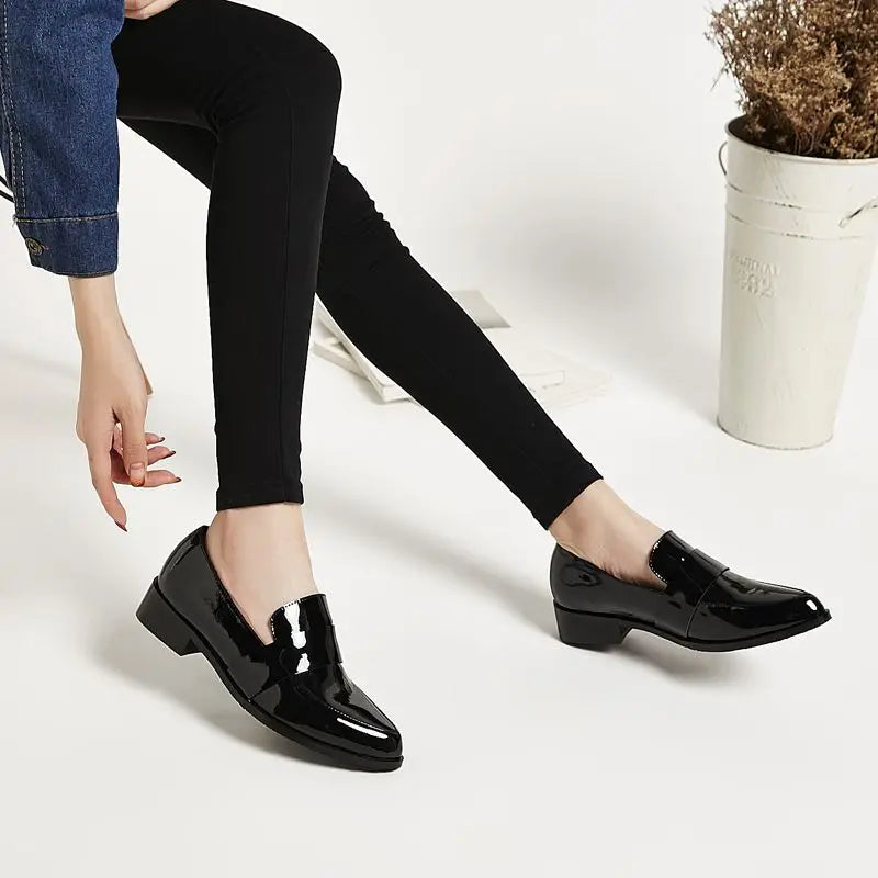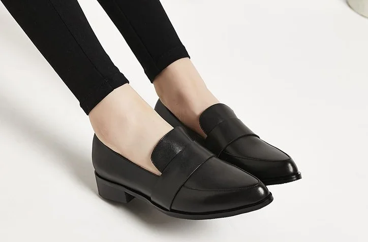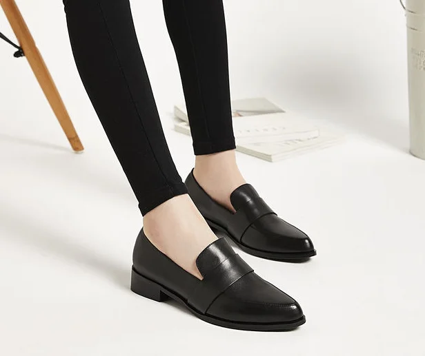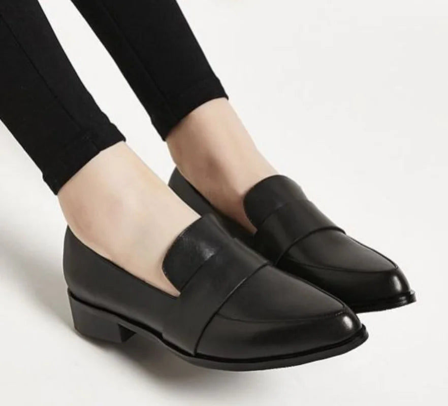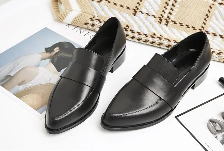Luxury Leather Casual Office Shoes For Woman 2024 Women's Summer Footwear Low Heel Elegant Formal Black Pointed Toe Stylish Y2k