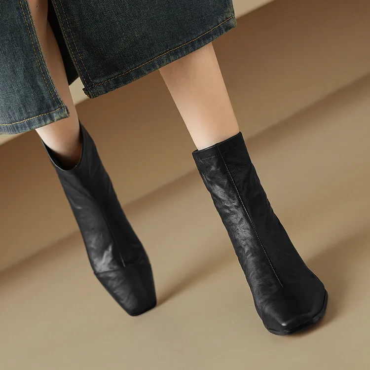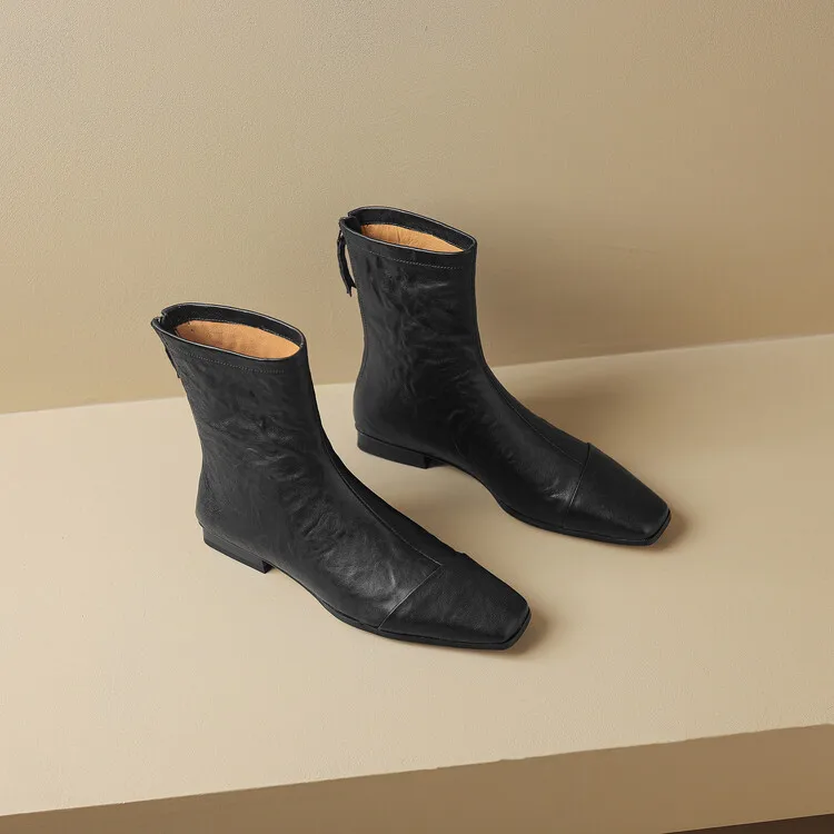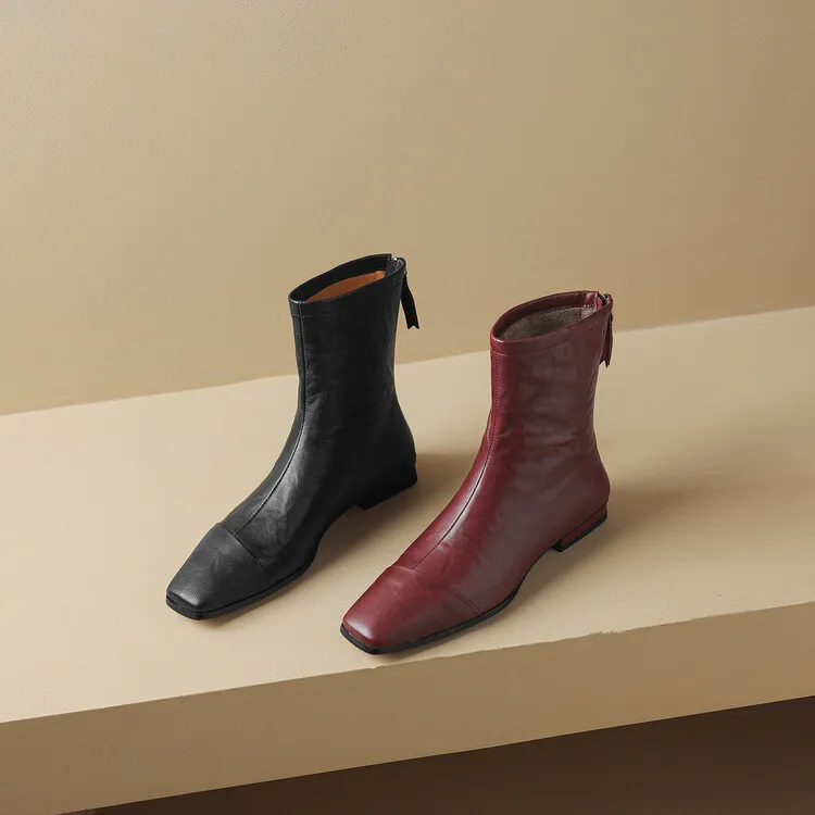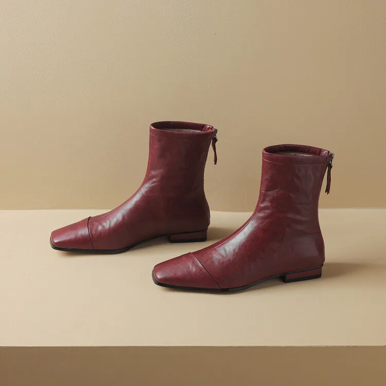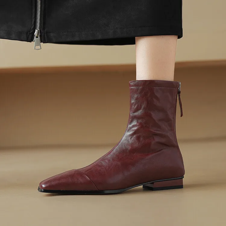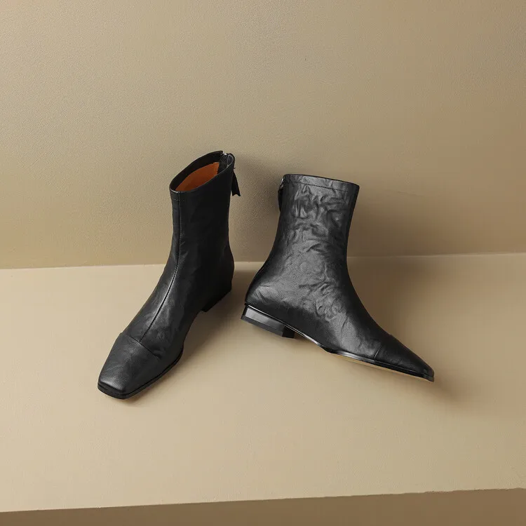 NEW Autumn/Winter Women Boots Square Toe Low Heel Shoes Genuine Leather Shoes for Women Concise Zipper Short Boots Modern Boots