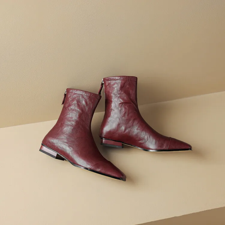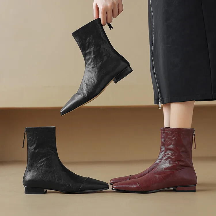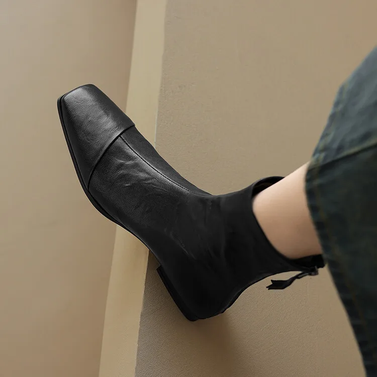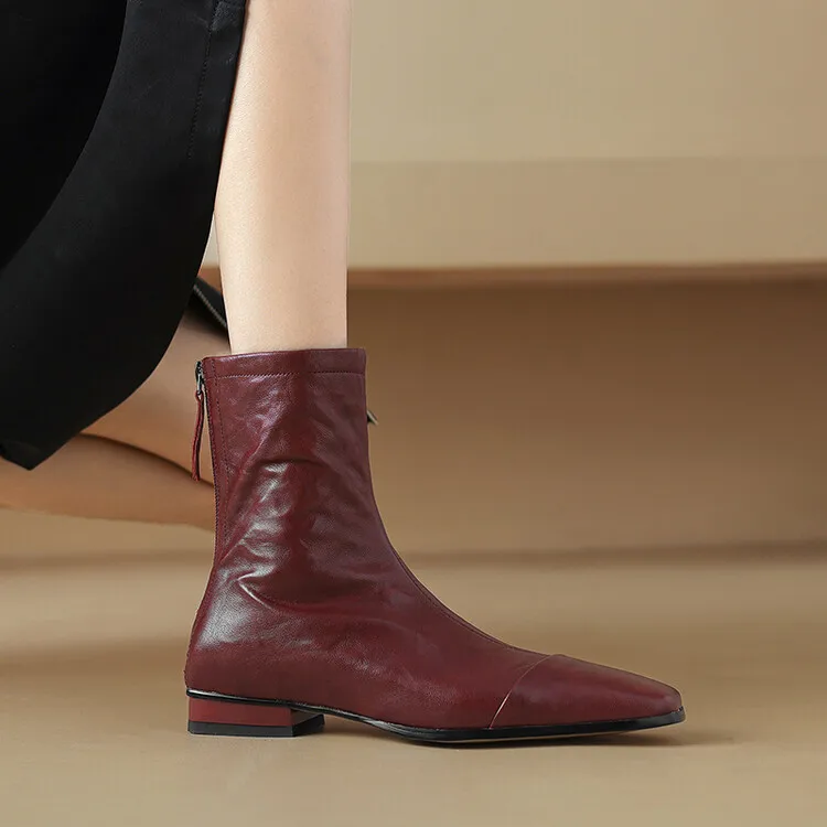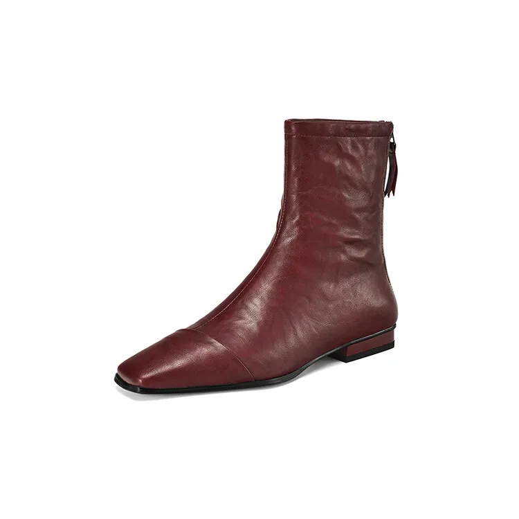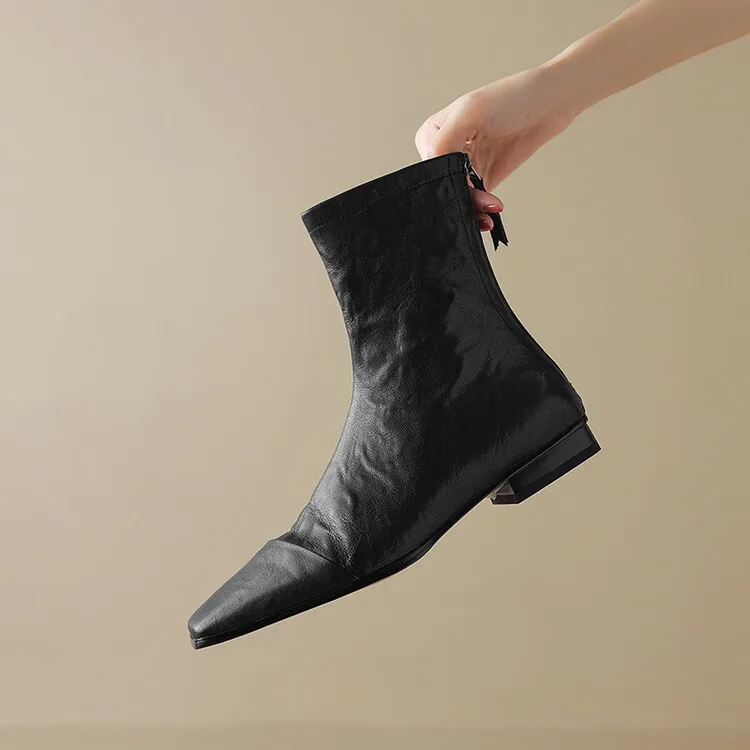 NEW Autumn/Winter Women Boots Square Toe Low Heel Shoes Genuine Leather Shoes for Women Concise Zipper Short Boots Modern Boots