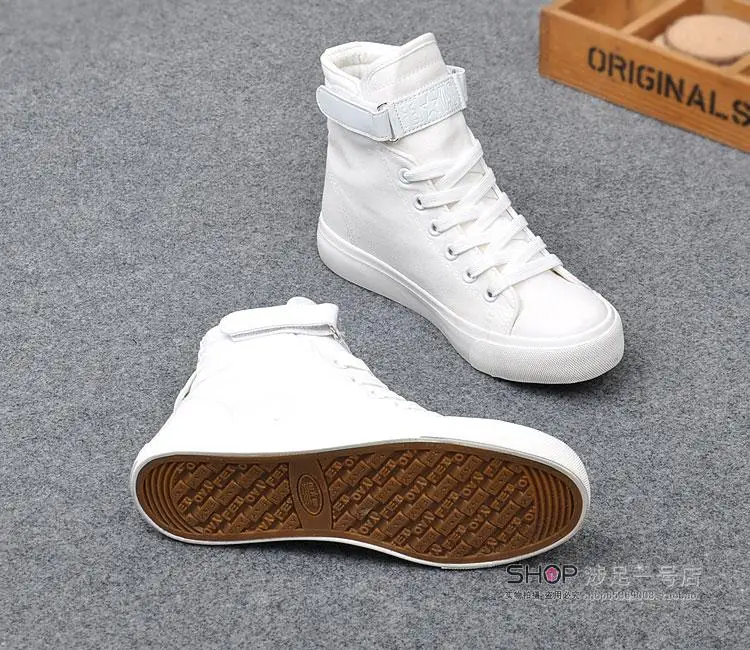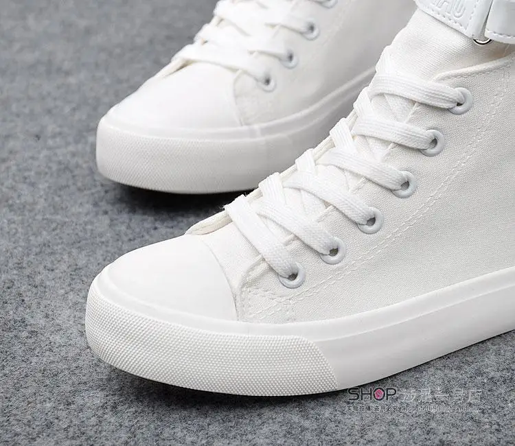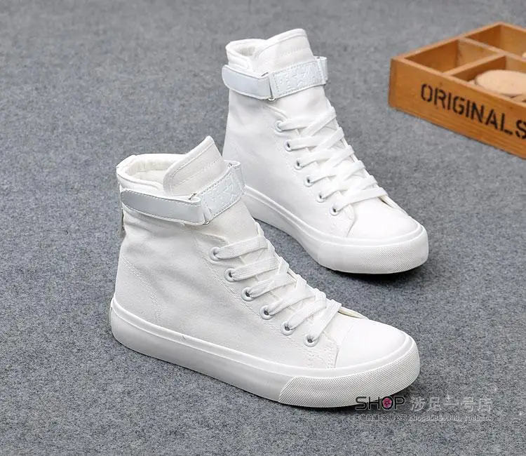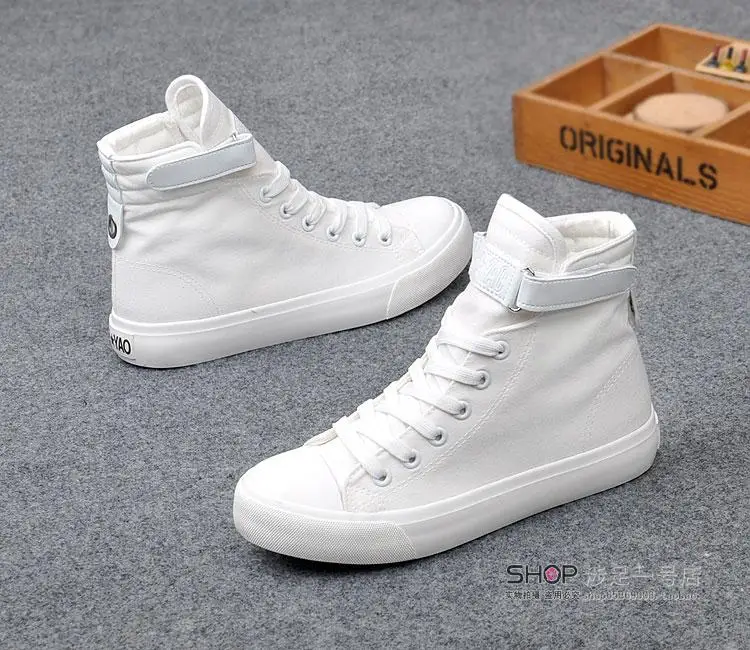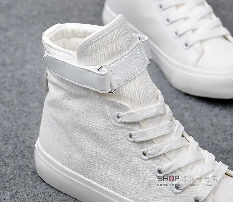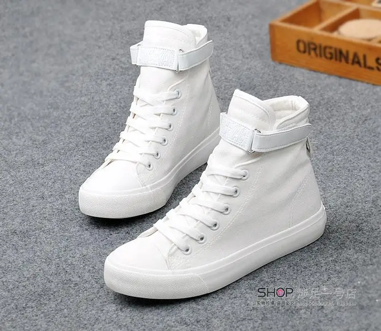 New Fashion High Top Sneakers Canvas Shoes Women Casual Shoes White Flat Female Basket Lace Up Solid Trainers Chaussure Femme