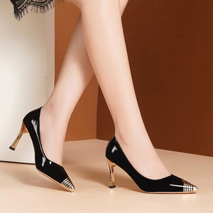 New In Black Special Head Spiral Pattern Fashion Women's Shoes Pointed Fine Heel Wedding High Heels Banquet Nightclub with Shoes