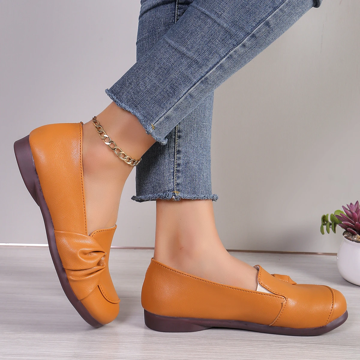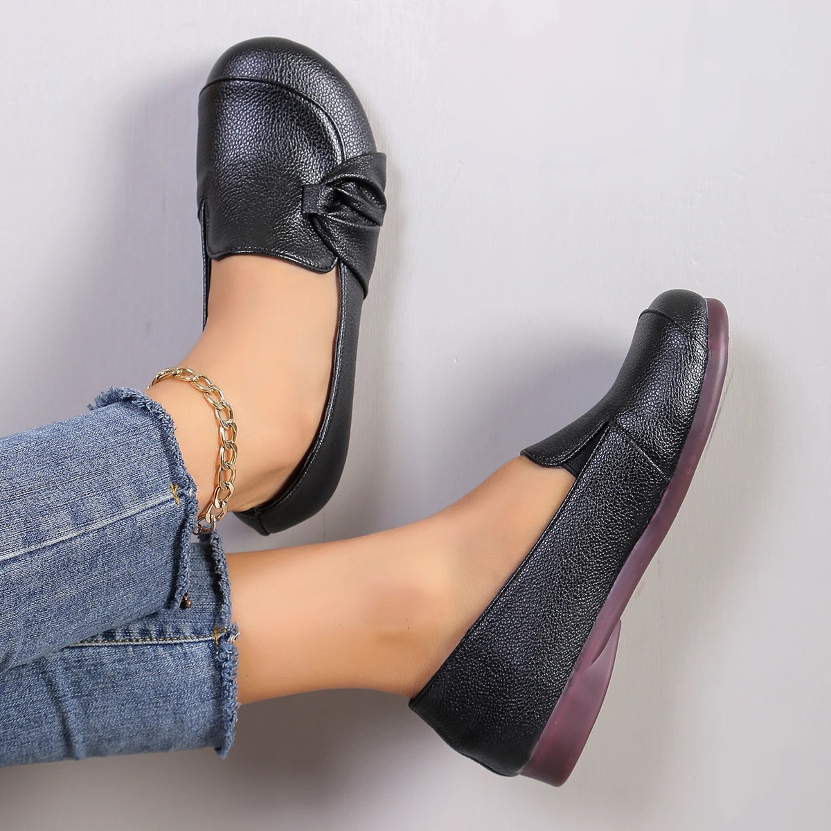 New Summer Women Flat Shoes Comfort Non-slip Soft Oxford Solid Color Mom's Shoes New Fashion Leather Flat Footwear