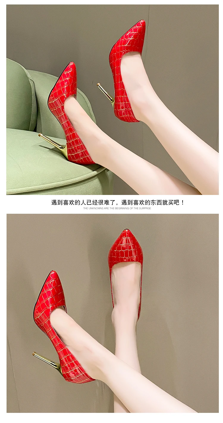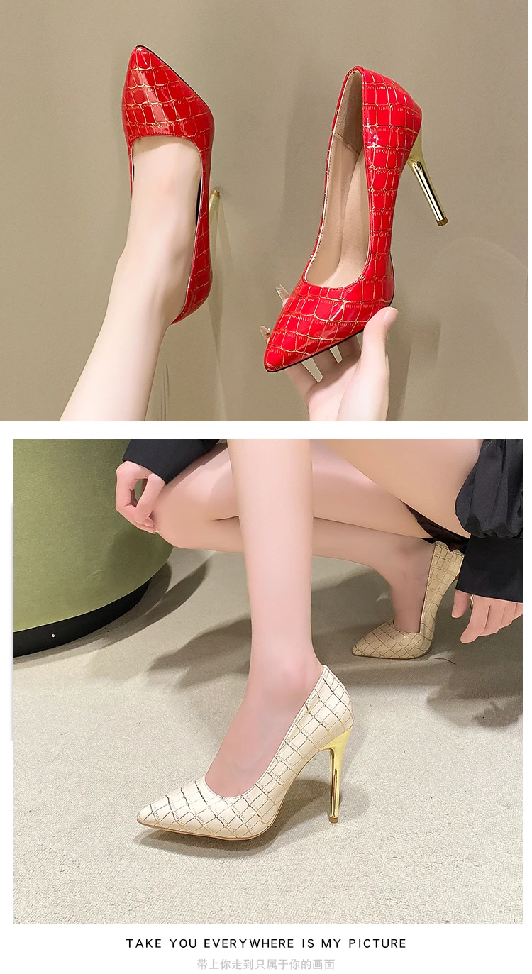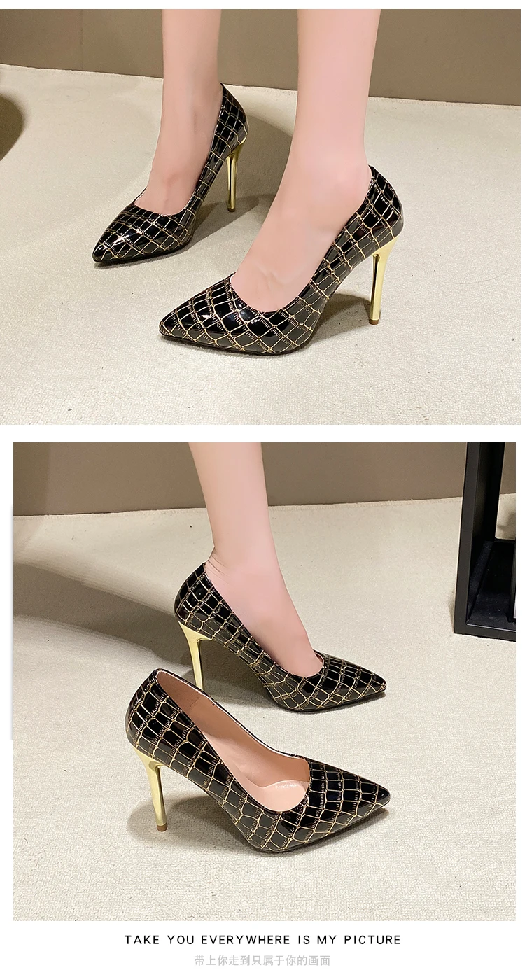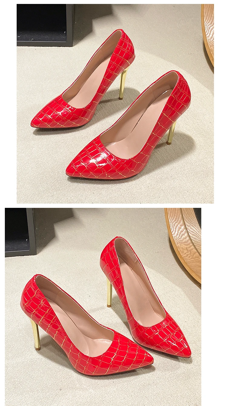 New Women's Patent Leather High Heels Pointed Tip Shallow Mouth One Kick Sexy Pumps Women Shoes Zapatos Mujer 2024 Tenden...
