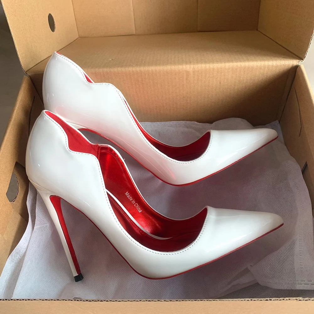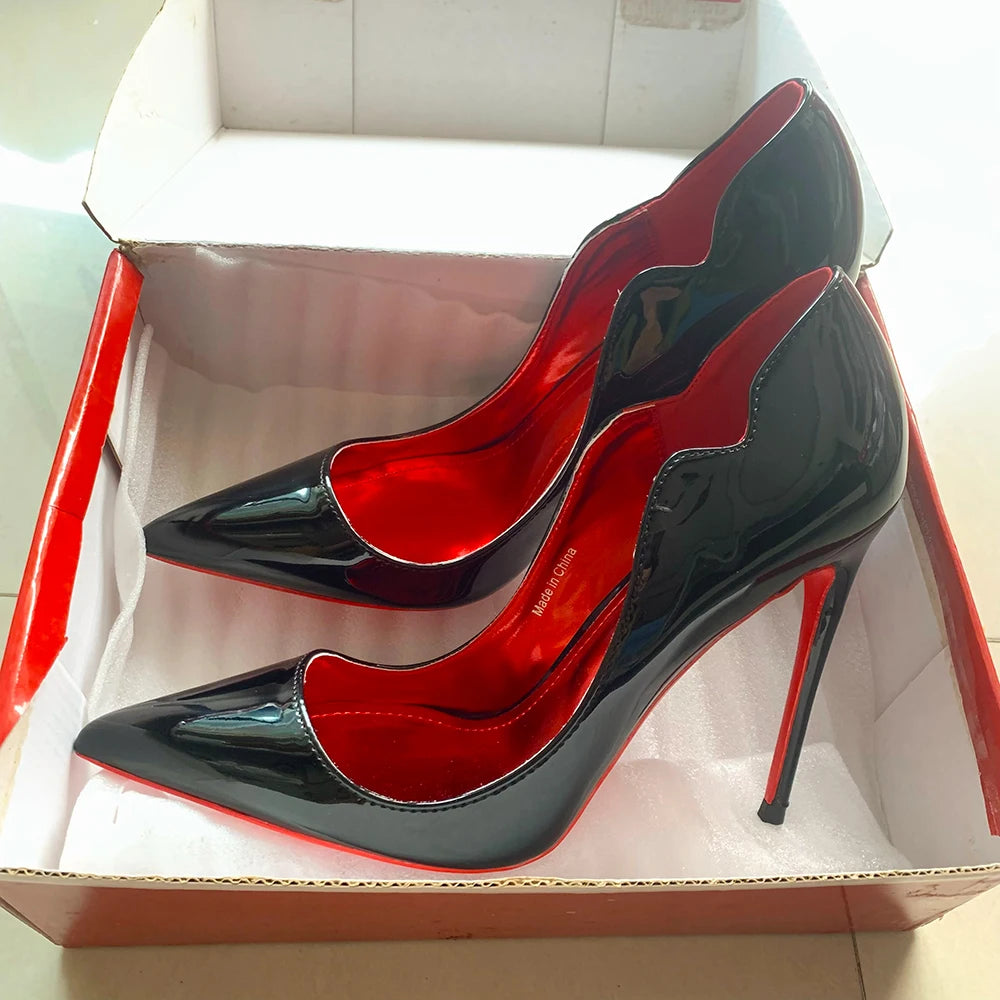 Newly Women Sexy Elegant Pumps Stilettos Glossy Patent Side V Cut High Heels Pointed Toe Party Curl Cut Celebrity Shoes Size46