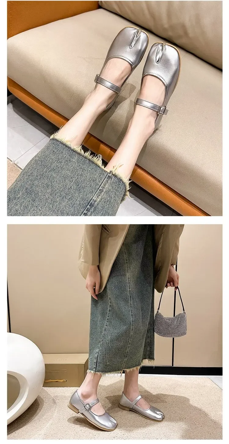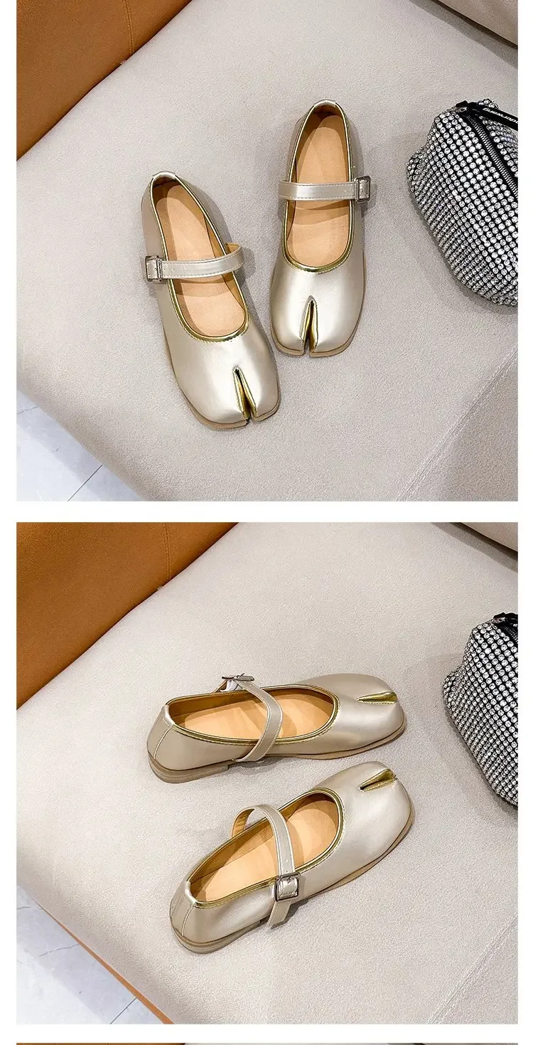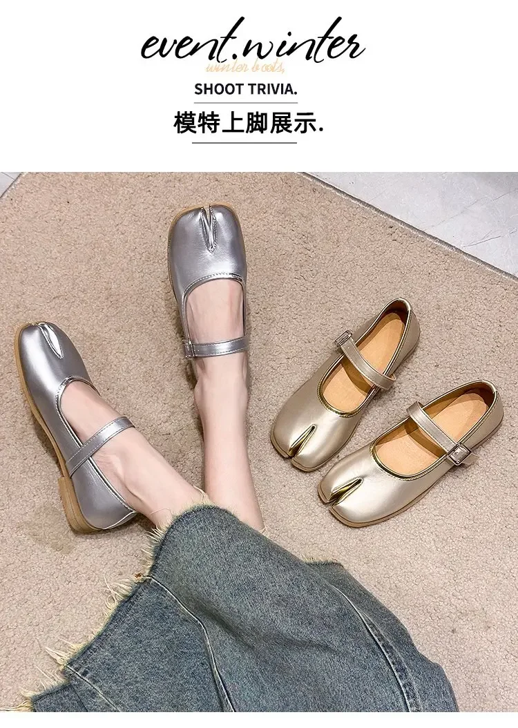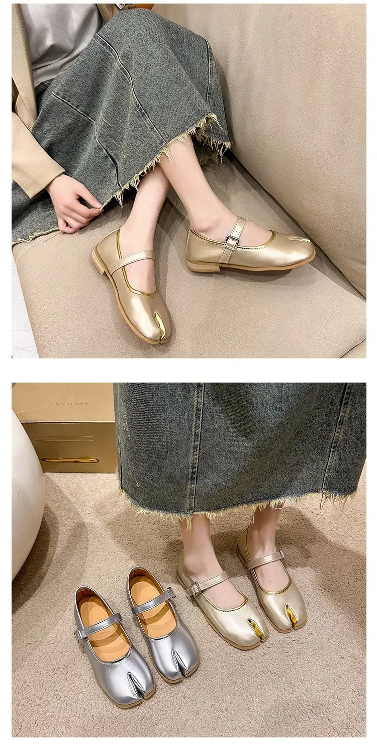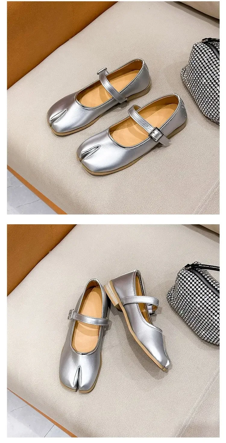 Novelty Split Toe flat shoes woman quality leather mary janes Japanese style trotters flats ankle bele Tabi ninja loafers women