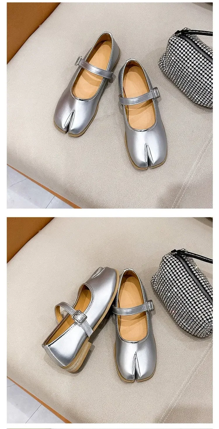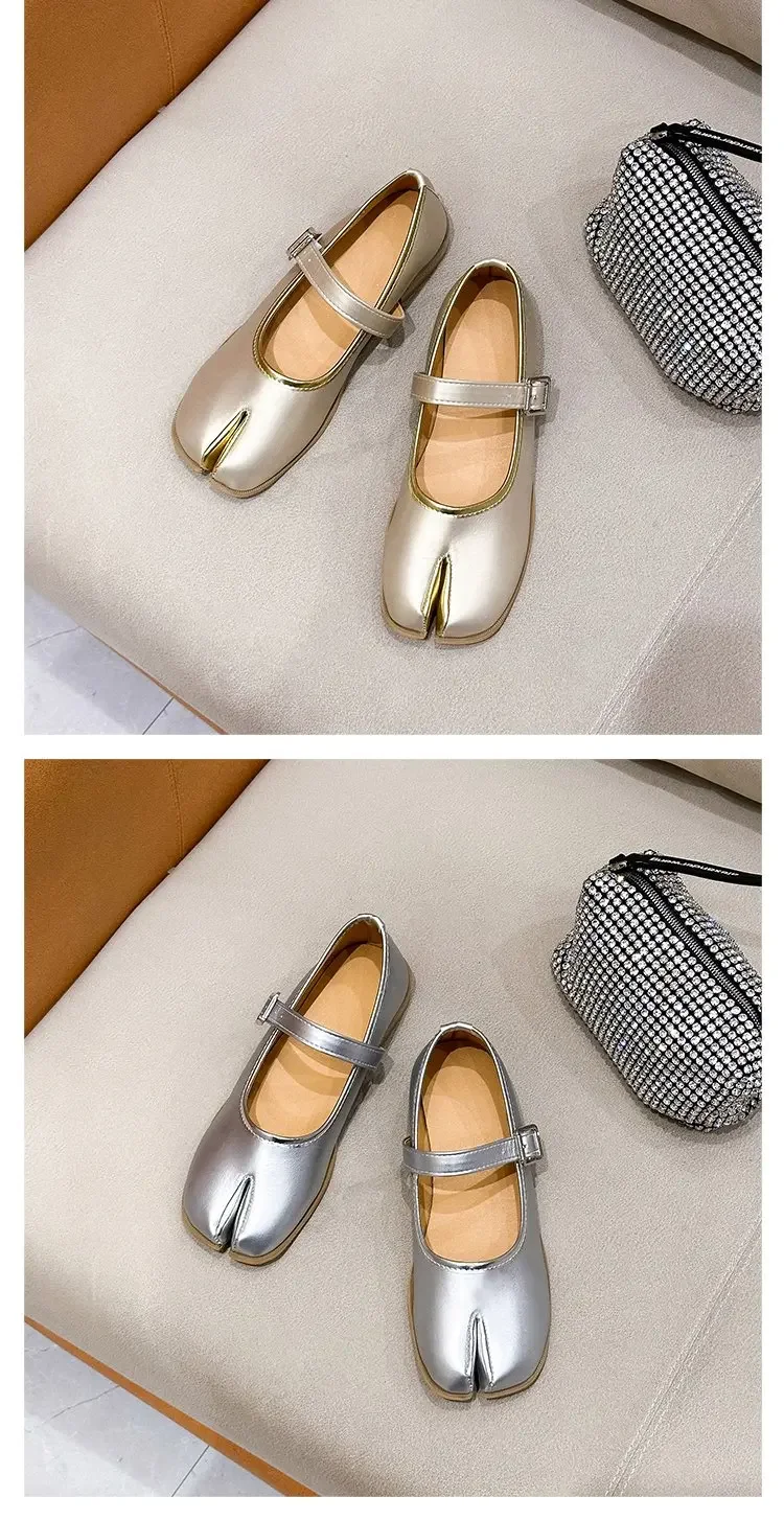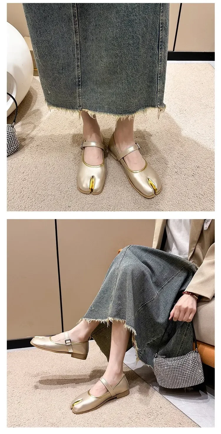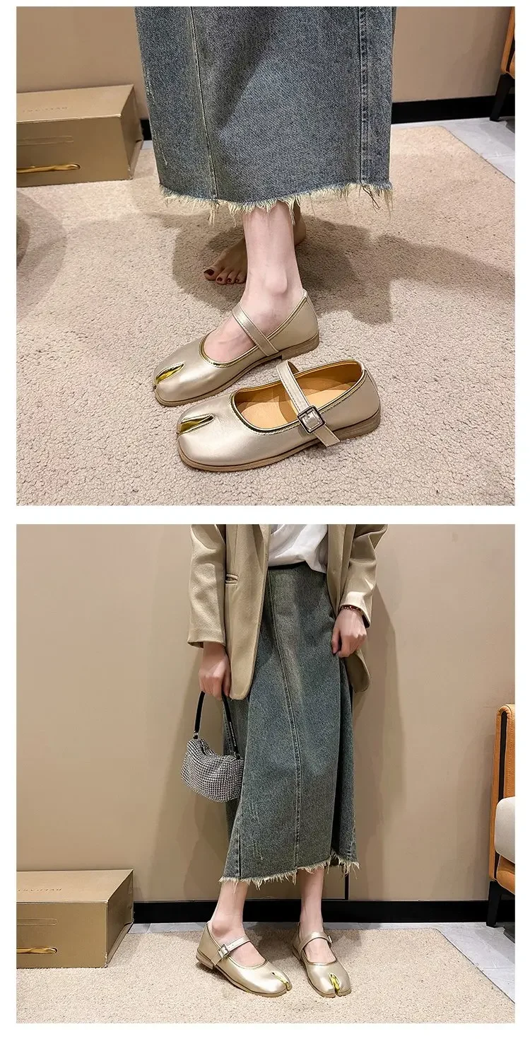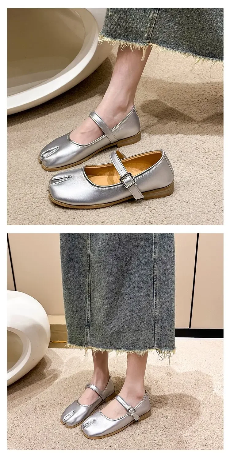 Novelty Split Toe flat shoes woman quality leather mary janes Japanese style trotters flats ankle bele Tabi ninja loafers women