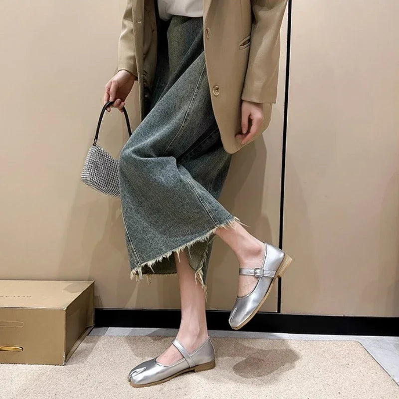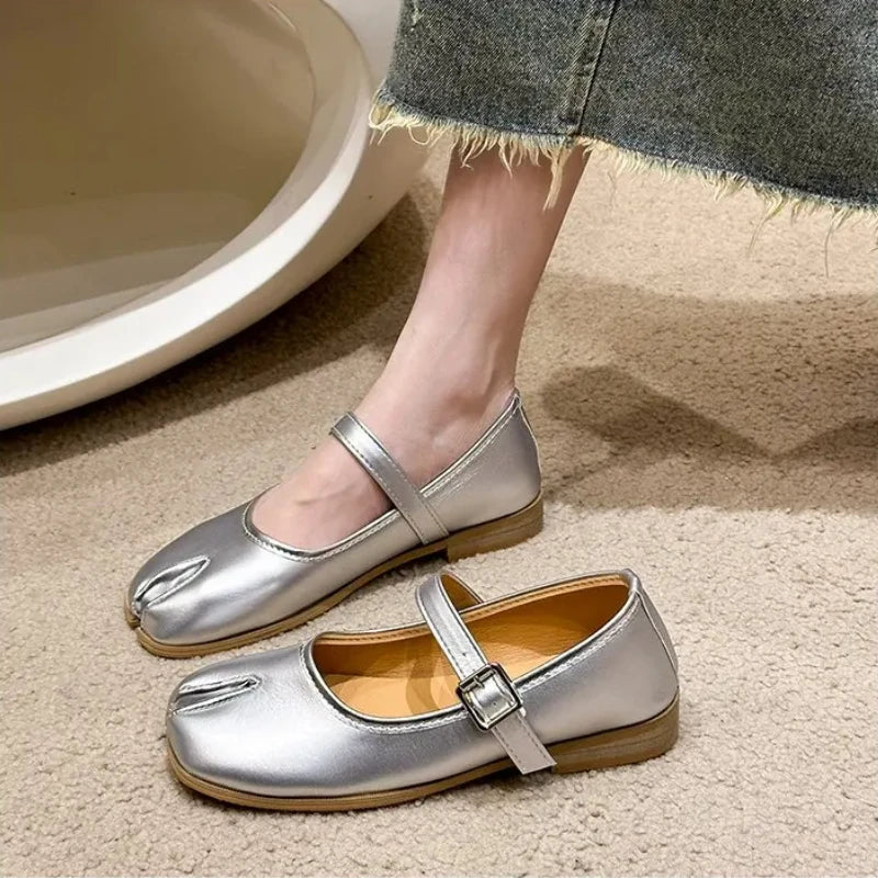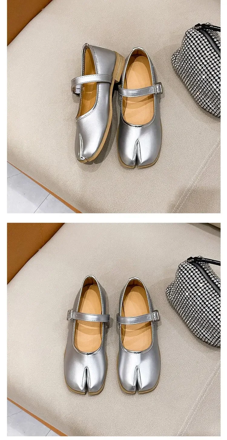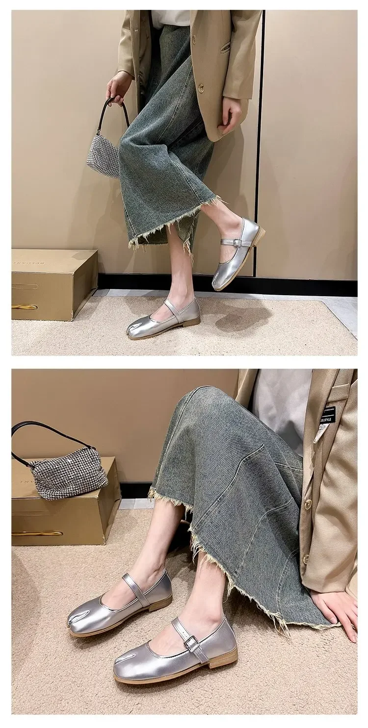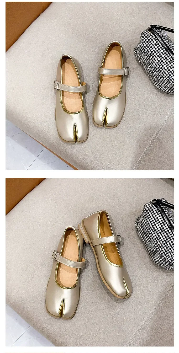 Novelty Split Toe flat shoes woman quality leather mary janes Japanese style trotters flats ankle bele Tabi ninja loafers women