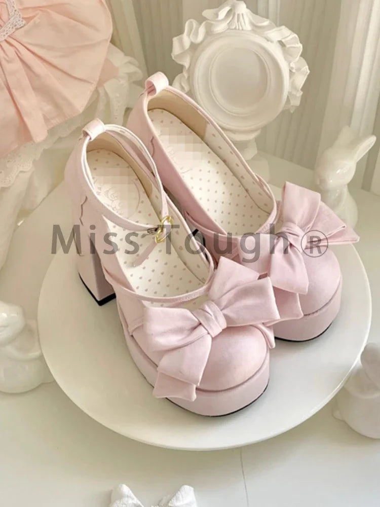 Pink Sweet Lolita Mary Janes Shoes Women Japanese Princess Kawaii High Heels Shoes Female Bow French Vintage Platform Shoes 2024