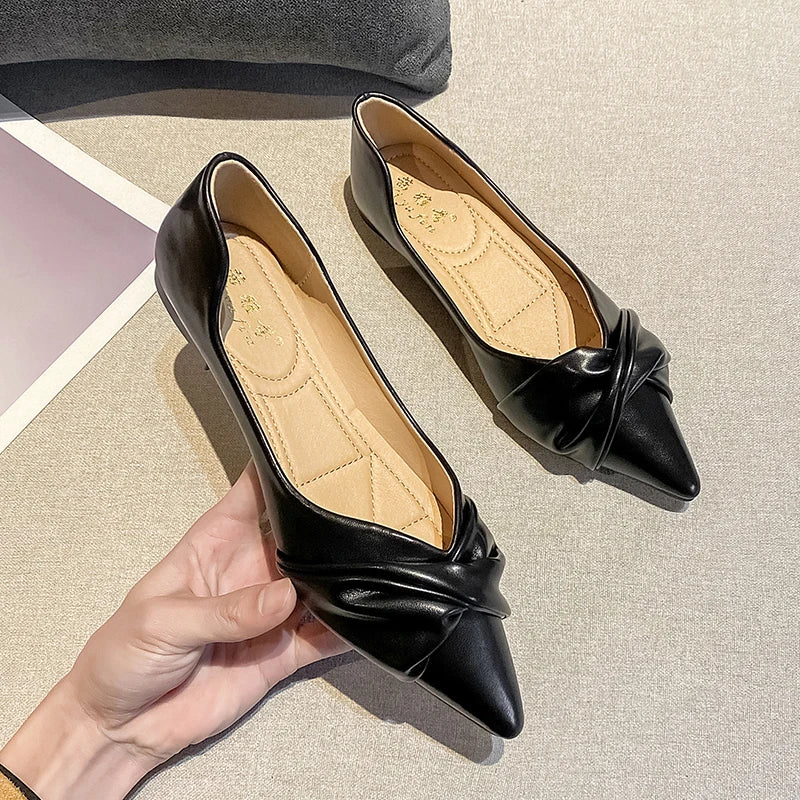 Pointed Shoes Women's Summer Soft Sole 2022 New Women's Shoes Shallow Mouth Scoop Shoes Flat Heel Solid Color Leather Flats