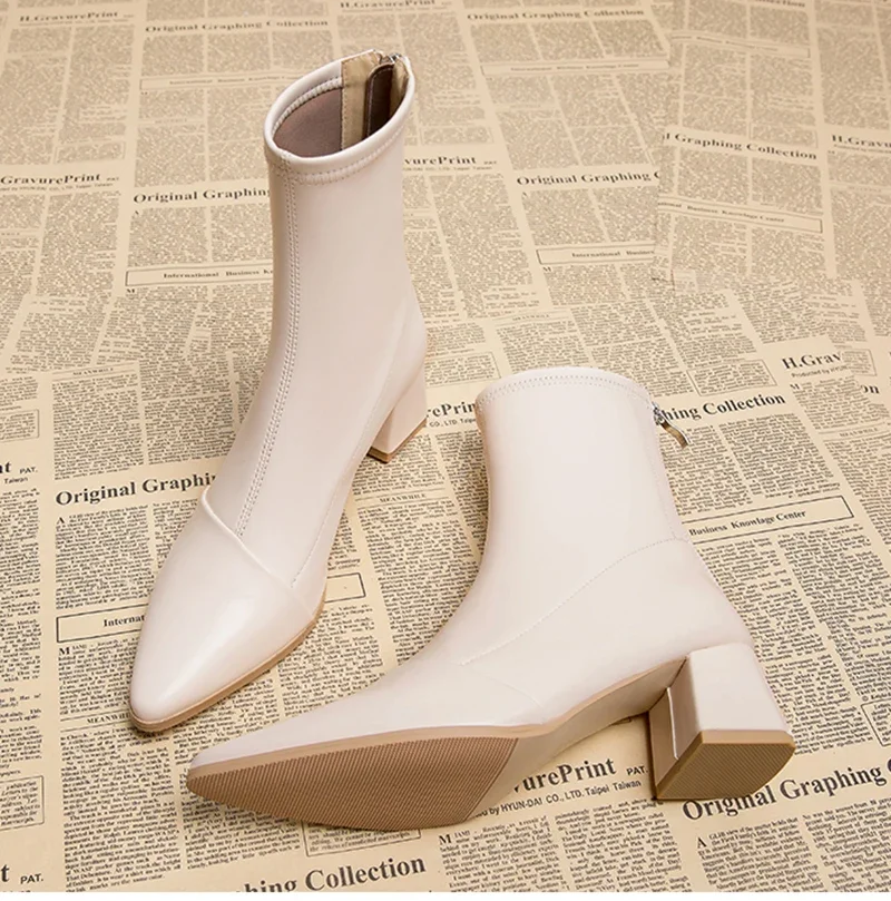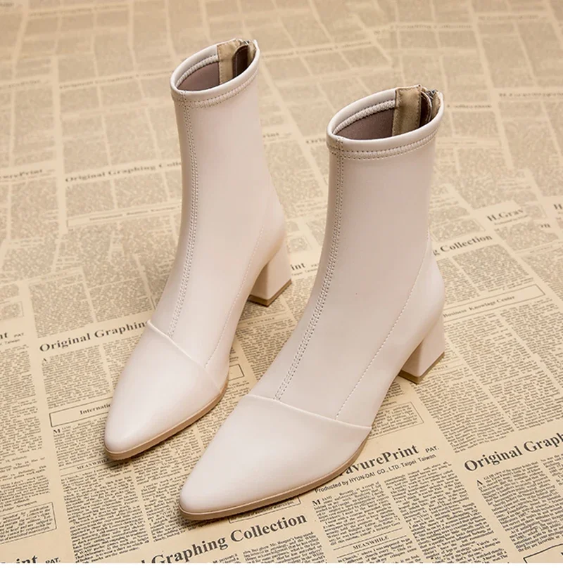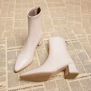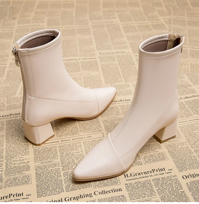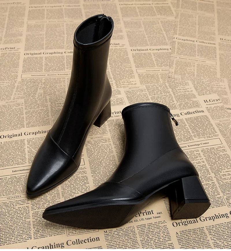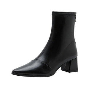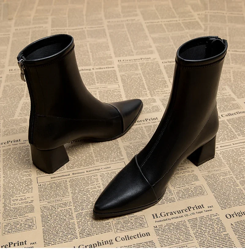 Pointed Toe Women Ankle Boots Fashion Back Zippers Shoes Autumn Winter Thick Heel Women's Short Booties