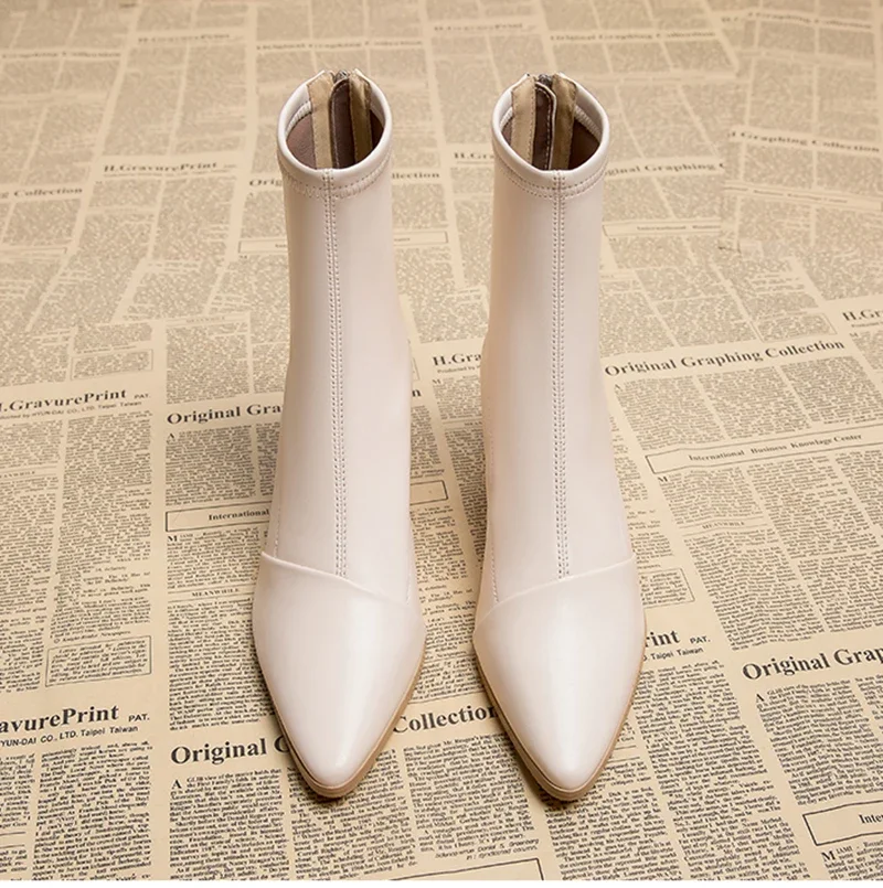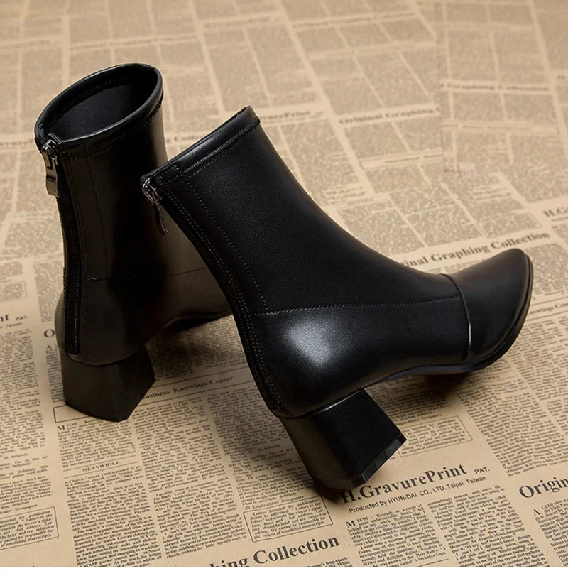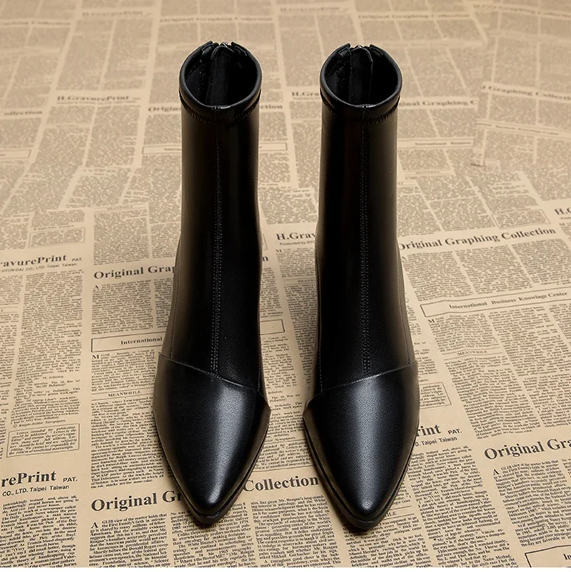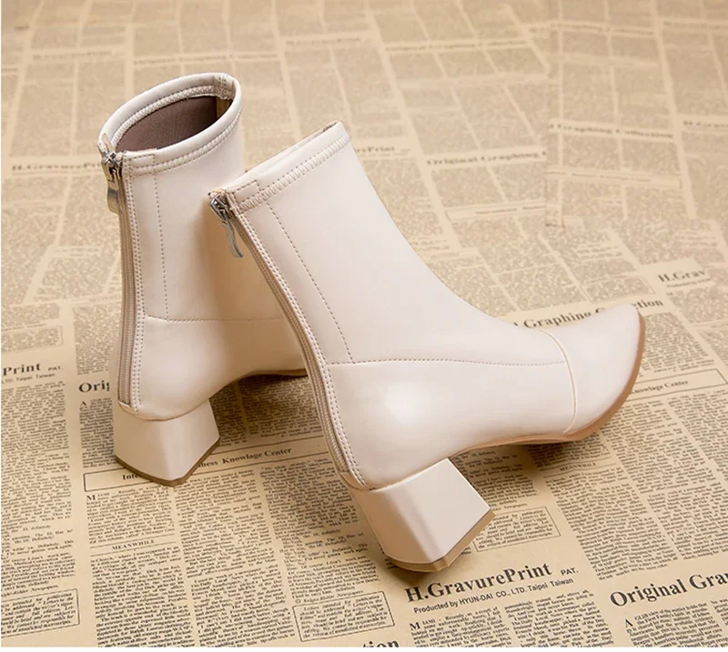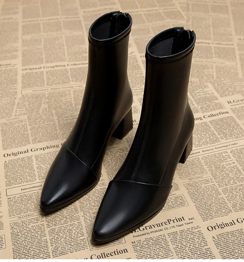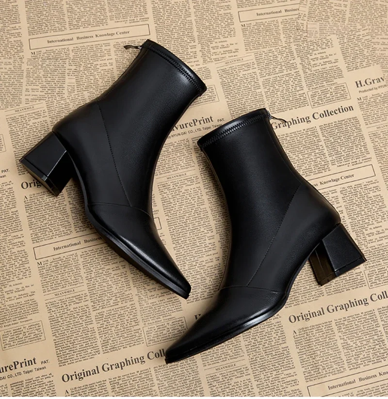 Pointed Toe Women Ankle Boots Fashion Back Zippers Shoes Autumn Winter Thick Heel Women's Short Booties